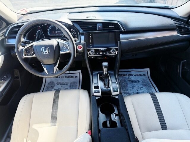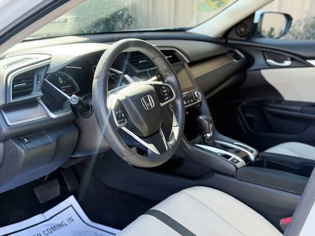 New Arrival is this Bright White Orchid Pearl on the outside with a refined Ivory interior, this 2017 Honda Civic EX-T is powered by a lively 1.5L Turbo I4 (174 hp, 162 lb-ft) paired with a smooth CVT and delivers an efficient 32 MPG city / 42 MPG highway. Factory-equipped for comfort and convenience: 7-inch Display Audio touchscreen with Bluetooth and USB connection and smartphone integration, push-button start with smart key entry, one-touch power moonroof, heated front seats, automatic climate control, steering-wheel audio and cruise controls, power windows/locks and alloy wheels. Safety and everyday peace of mind come standard too with a multi-angle rearview camera, ABS, stability control and full front-and-side airbags. Cheerful, efficient, and well-appointed for daily driving!