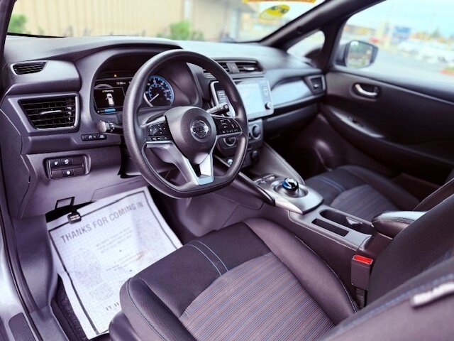 Inside, you'll find a spacious and comfortable cabin equipped with a 7-inch touchscreen display, perfect for navigating and enjoying your favorite tunes with Bluetooth connectivity. The LEAF S comes standard with a rearview camera, making parking a breeze, and features like automatic emergency braking and pedestrian detection ensure peace of mind on every journey.