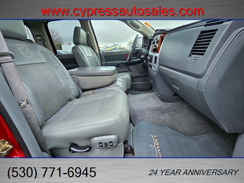 Own a truck that refuses to be ignored — a 2006 Dodge Ram 2500 Laramie 4x4 with the legendary 5.9L Turbocharged Cummins Diesel I6 (OHV, 24V, FI). Finished in eye-catching Flame Red Clearcoat over a rugged Medium Slate Gray interior, ( i am so tired of white trucks!) This Ram 2500 is in excellent overall condition, has a clean CARFAX, and shows under 164,000 miles — averaging less than 8,000 miles per year. This is a low-mileage, hard-working diesel with the durability and torque you need.