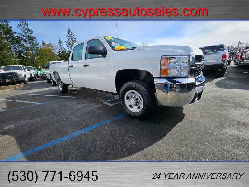 Well now folks we have another rare machine here for you working pleasure..... Welcome to our lot, (and possibly your fleet) a 2009 Chevrolet Silverado 2500 Duramax Diesel with the unbeatable Allison transmission, with a crew cab, with a long bed, and..the pièce de ré·sis·tance)..a TommyLift, liftgate. Where are you gonna find a cooler combination in a pre-def, rugged work truck? Well here at Cypress Auto Center, of course! Powering this versatile machine is the Duramax diesel engine (LMM) which produces 365 horsepower at 3,200 rpm and 660 lb-ft of torque at 1,600 rpm. Harness this power for everyday tasks making your workday a breeze. This 2009 Silverado 2500 has an easy clean interior with vinyl flooring and cloth front and rear bench seating. Added to the basic features of this truck are an AM/FM stereo with CD player, cruise control, tilt wheel, power door locks, spray on bedliner, tow hitch and wiring, trailer brake, ice cold air conditioning, a warm and fuzzy heater. The TommyLift lift gate works like a dream...( it held up nicely when I rode up and down on it!) This marvel of engineering comes fresh off US Government fleet service use out of the Lancaster CA.. quite possibly this was used around Edwards and has seen some Space mission action. We refreshed the fluids, replaced tie rod end, ball joints sent if off to the spa for a spruce up and now it's ready to find a new assignment. This Silverado arrives in excellent overall condition, under 82,000 miles (averaging less than 5,000 miles per year) and backed by a clean CARFAX. With a TOMMY LIFT already fitted, this truck stands ready to dominate jobsite demands, tow with supreme confidence, and carry every task with confidence and poise.. Come on down, take this for a spin, and then take it home...this one will sell fast!