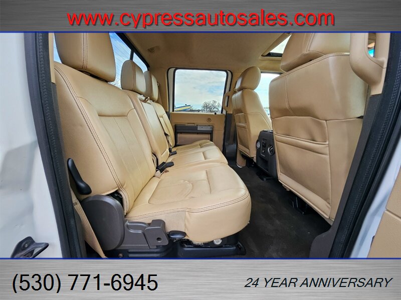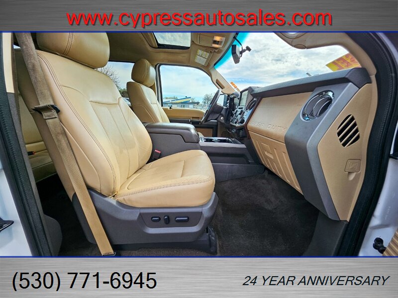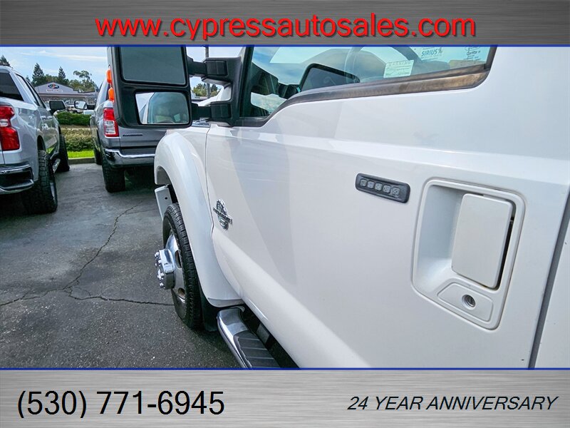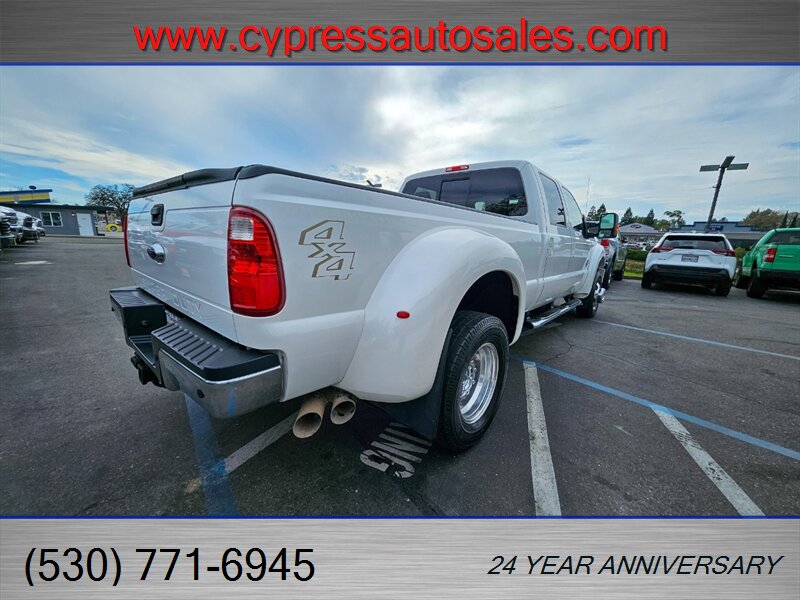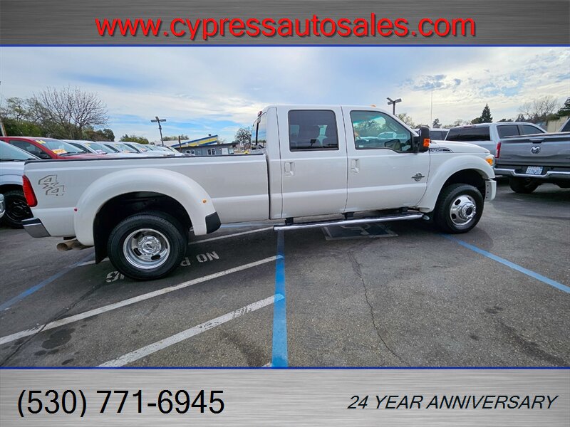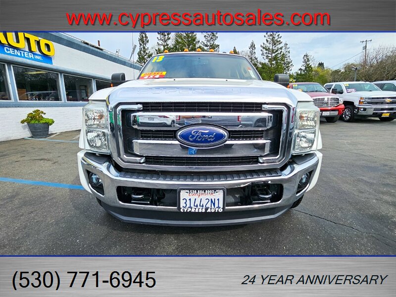 Bright, capable, and built to work — this 2013 Ford F-450 Lariat Crew Cab Dually 4x4 is a standout combination of heavy-duty capability and luxury comfort This truck is in excellent overall condition and comes with a clean CARFAX and a single previous owner. Here's a rundown of all the goodies this beauty has to offer.- Powered by the tough Power Stroke 6.7L Biodiesel Turbo V8 producing 400 hp and roughly 800 ft-lb of torque, paired to Ford’s heavy-duty TorqShift 6-speed automatic transmission for smooth shifts under load.- Four-wheel drive with a robust chassis and suspension designed for towing and payload duties; dual rear wheels (dually) for maximum stability when hauling or towing heavy loads.- Remote vehicle start for comfort and convenience- 8 ft long bed for maximum cargo capacity- Tough Bed spray-in bedliner for long-lasting bed protection- Skid plate package for underbody protection on rough jobsites- Tailgate step for easy bed access- Power moonroof for a bright, airy cabin- Heated rear seats for passenger comfort on chilly days- Leather luxury captain’s chairs with center console — upscale, comfortable seating front and rear- Gooseneck hitch kit installed for serious towing capability- Upfitter switches for adding auxiliary lighting, compressors, or other equipment easily - Power-adjustable front seats with heating, an adjustable steering wheel, and multiple storage compartments and cupholders for daily practicality- User-friendly center stack with AM/FM stereo and auxiliary inputs, steering-wheel audio and cruise controls for hands-on convenience, and a clear instrument cluster- Dual-zone climate control to keep driver and passengers comfortable in all seasons- Power windows, locks and mirrors, and remote keyless entry for everyday convenience