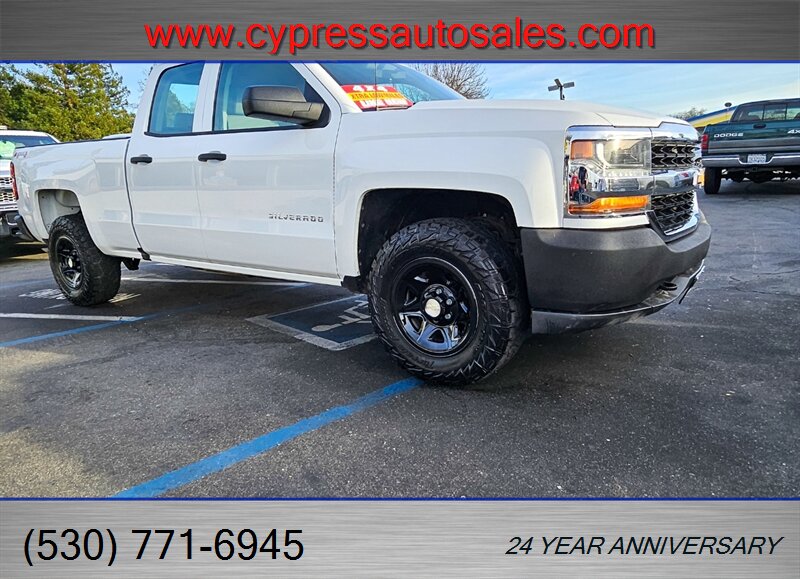 This rugged and capable 2017 Silverado 1500 Double Cab is powered by the dependable EcoTec3 4.3L Flex Fuel V6 (285 hp / 305 lb-ft), paired with four-wheel drive for confident performance in work and play. With under 60,000 miles (averaging less than 7,700 miles per year), a clean CARFAX, and excellent overall condition, this truck is ready to go the extra mile. Key options included are - Spray-on bed liner for durable protection and long-lasting cargo area preservation