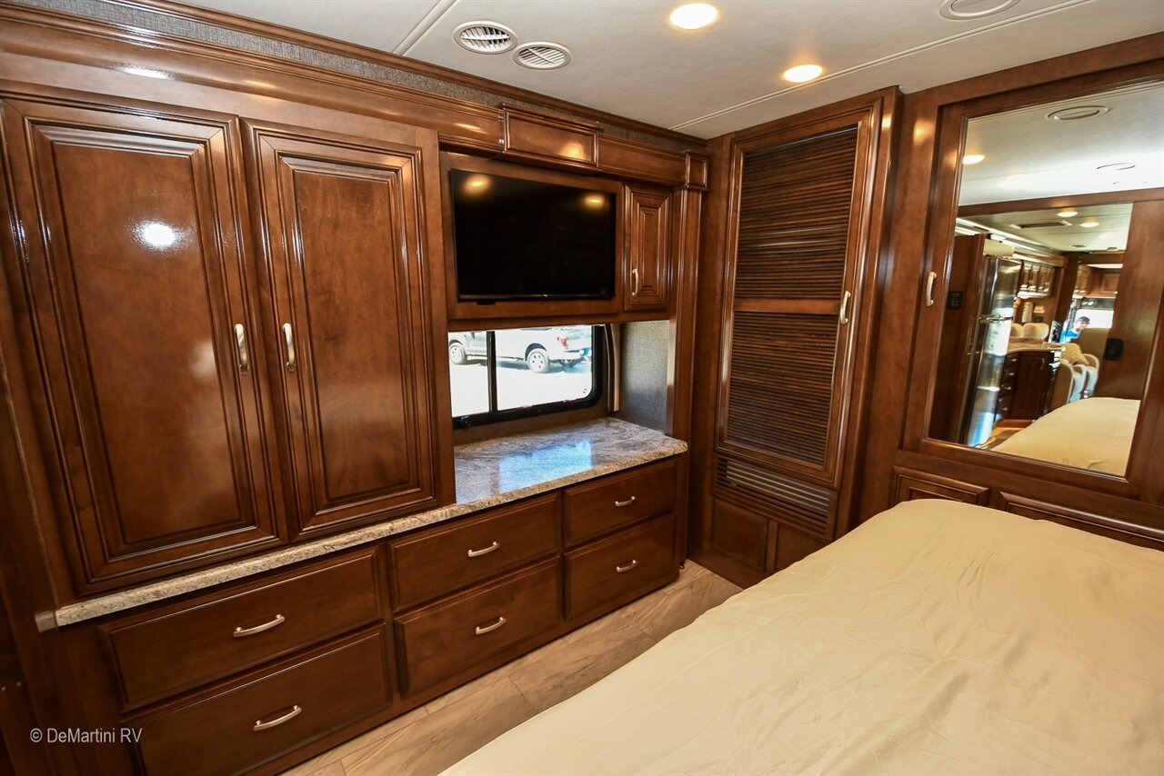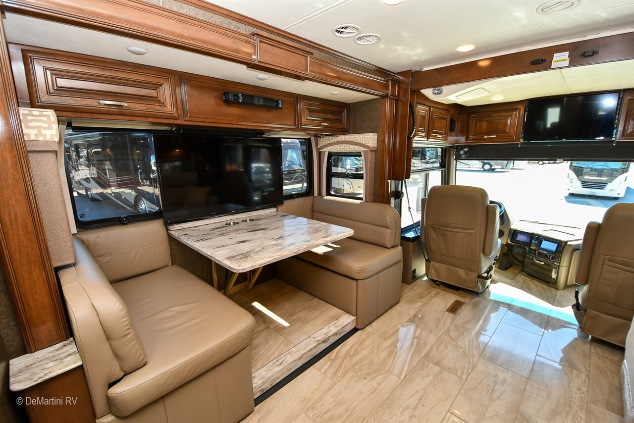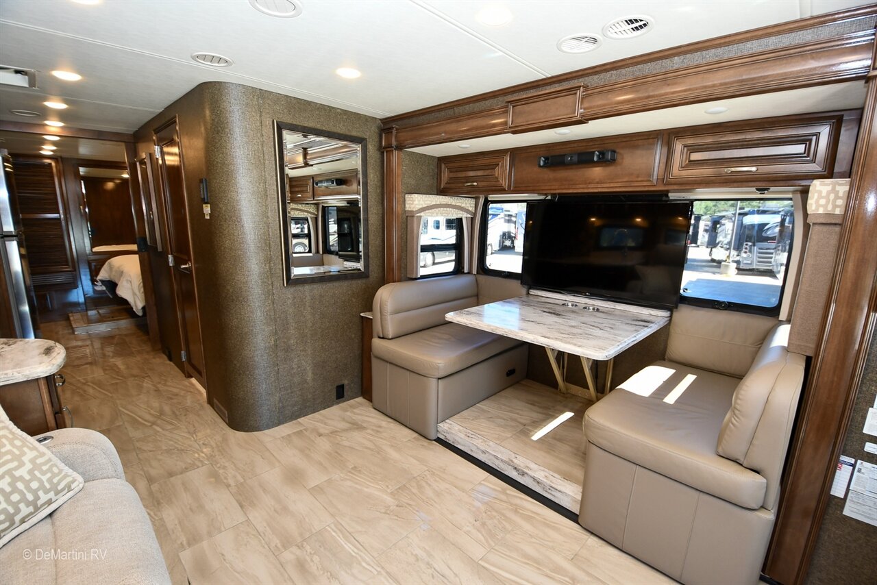 2018 Thor Aria 3401 Quad Slide-Out Class A Diesel Motorhome. This Coach is Built on a Freightliner Chassis and Powered by a Cummins 6.7L I6 360HP Turbo Diesel Engine with 38,158 Miles! Equipment Includes: Aluminum Wheels, Side-Hinged Baggage Doors, Pass Through Slide-Out Storage Tray, Hydraulic Leveling Jacks, 2000 Watt Inverter, 3M Film Front Mask, Three Solar Panels, Lifeline Batteries, Exterior Entertainment Center w/TV, Full Encased Awnings, Auto Front Door Awning, Auto Patio Awning, MaxxAir Vents, Dual Ducted Roof A/C's, Exhaust Brake, 3-Camera Rear Vision System, Power Leather Cockpit Seats, Co-Pilot Power Footrest, Trip Computer, Power Sunvisors, Dropdown Overhead Bunk, and Water Purifier, Tile Floor, Stacked Washer/Dryer, LCD TV in Bedroom, LCD TV in Living Area, LCD TV in Cockpit, Residential Refrigerator, Convection Microwave, Solid Surface Countertops, Multiplex Wiring System, Induction Cooktop. Equipped with a Onan 8.0KW Diesel Generator with 172 Hours. The Floorplan Features: Full Wall/3 Slide-Out, Booth Dinette, Theater Seats, Private Bath, King Bed. Asking only $129,900! Item #D3159 DeMartini RV Sales