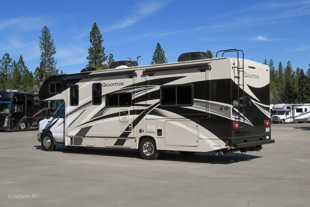2020 Thor Quantum KW29 Double Slide-Out Class C. This Coach is Built on a Ford Chassis and Powered by a Ford Triton 6.8L V10 Engine with only 20,450 Miles! Equipment Includes: Pass Through Storage, Exterior Entertainment Center w/TV, Auto Patio Awning, Dual Ducted Roof A/C's, MaxxAir Vent, Stabilizer Jacks, On-Demand Water Heater, Rear View Camera, Leather Cockpit Seats, GPS Navigation System, and LCD TV in Bedroom, LCD TV in Living Area, Refrigerator, Oven, Convection Microwave, Solid Surface Countertop. The Floorplan Features: Double Slide-Out, Booth Dinette, Theater Seats, Private Bath, King Bed, Cab Over Sleeper. Asking only $72,900! Item #D3214 DeMartini RV Sales