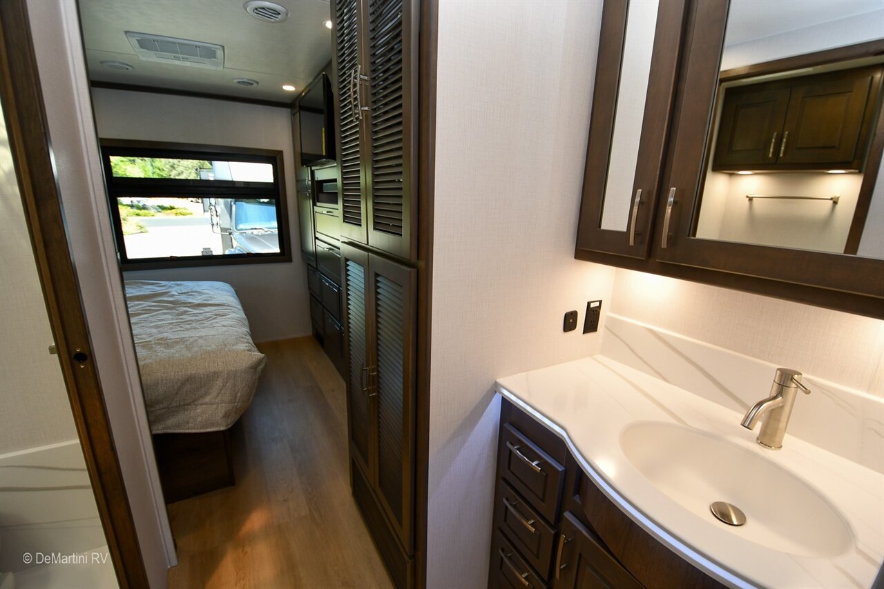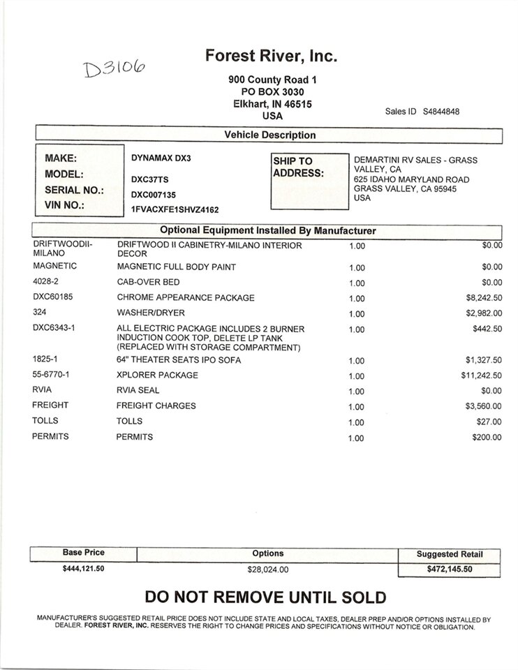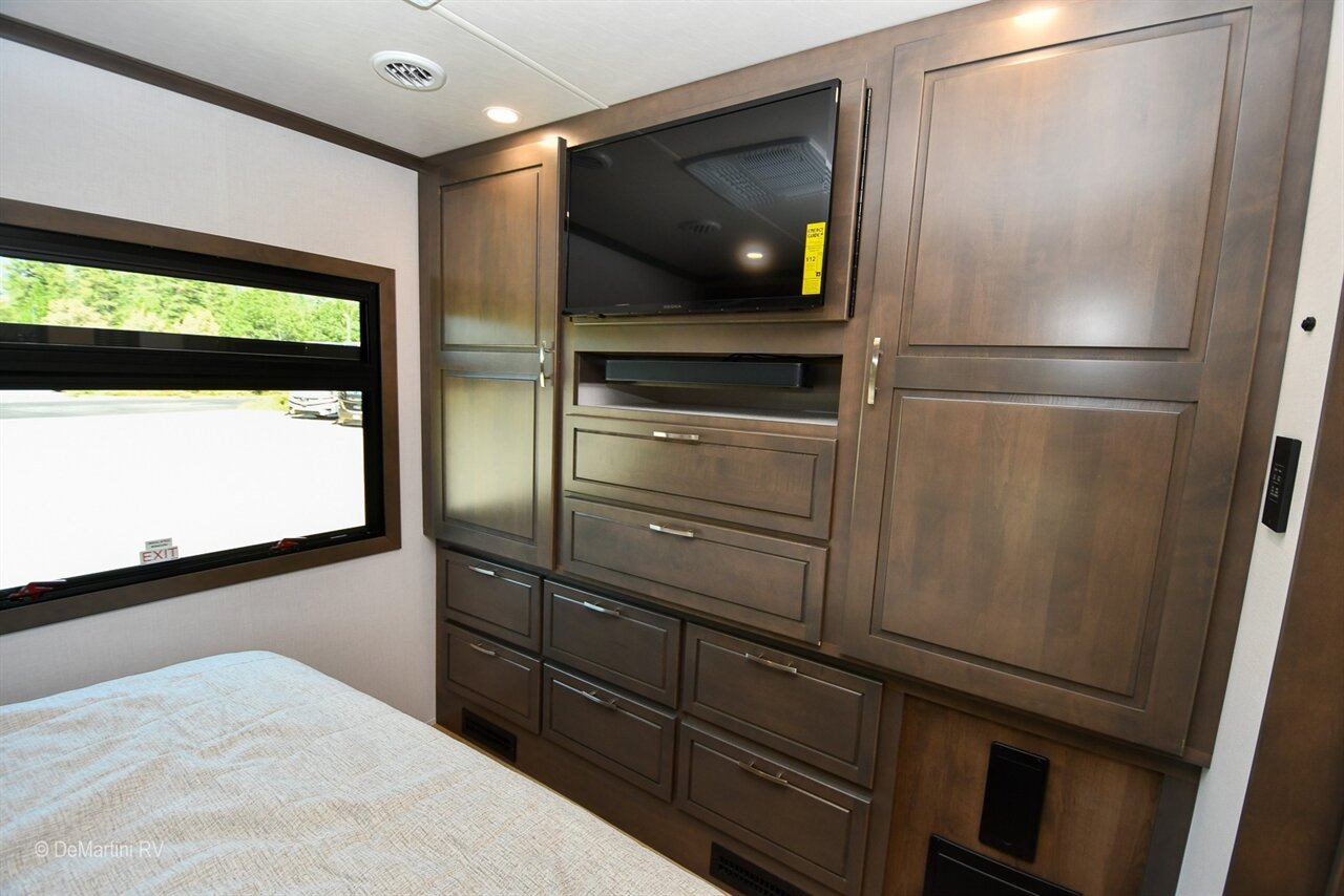 2026 Dynamax DX3 37TS Triple Slide-Out Class Super C Diesel Motorhome. The DX3 emanates a legendary level of power, prestige, and precision. It turns heads with its impeccable paint schemes and eye-catching curb appeal. A look under the DX3’s hood reveals an impressive powerhouse that showcases the Detroit DD8 7.7L 375 HP engine and the Allison 3200 TRV automatic transmission, resulting in remarkable torque (1,050 lb.-ft.) and towing capacity (20,000 lbs.). All this power and performance is perfectly matched with a living space that exceeds expectations. The MSRP is over $472K, but we're Slashing it down too low to advertise! Item #D3106 DeMartini RV Sales