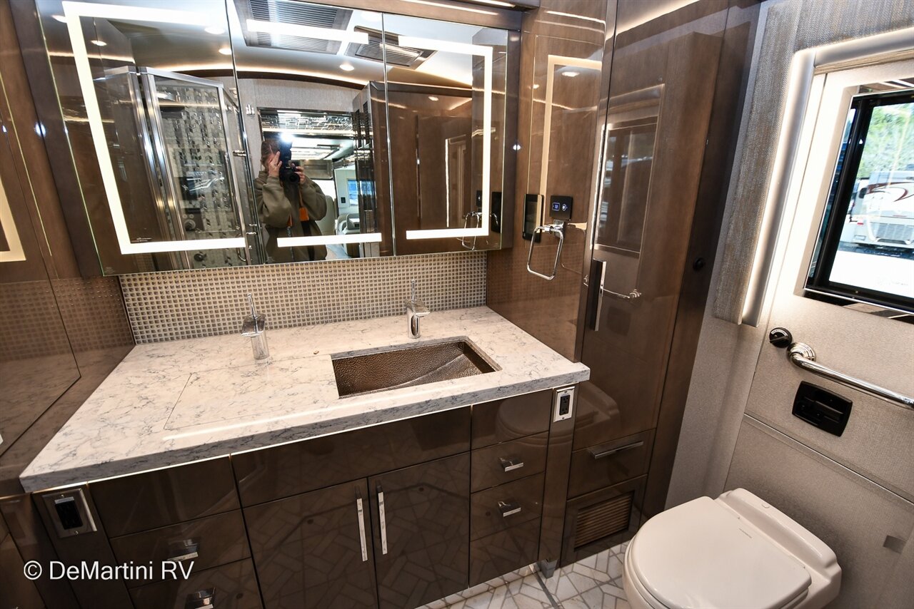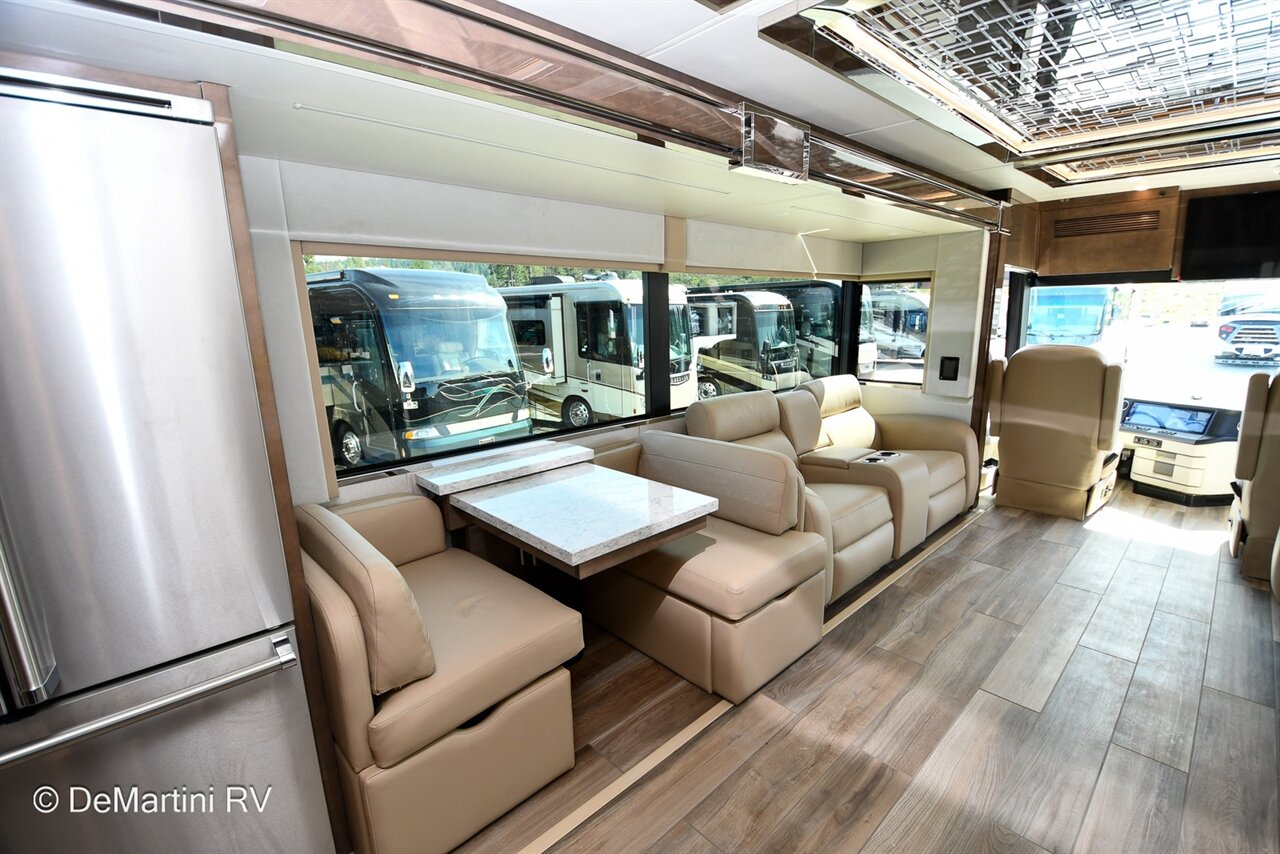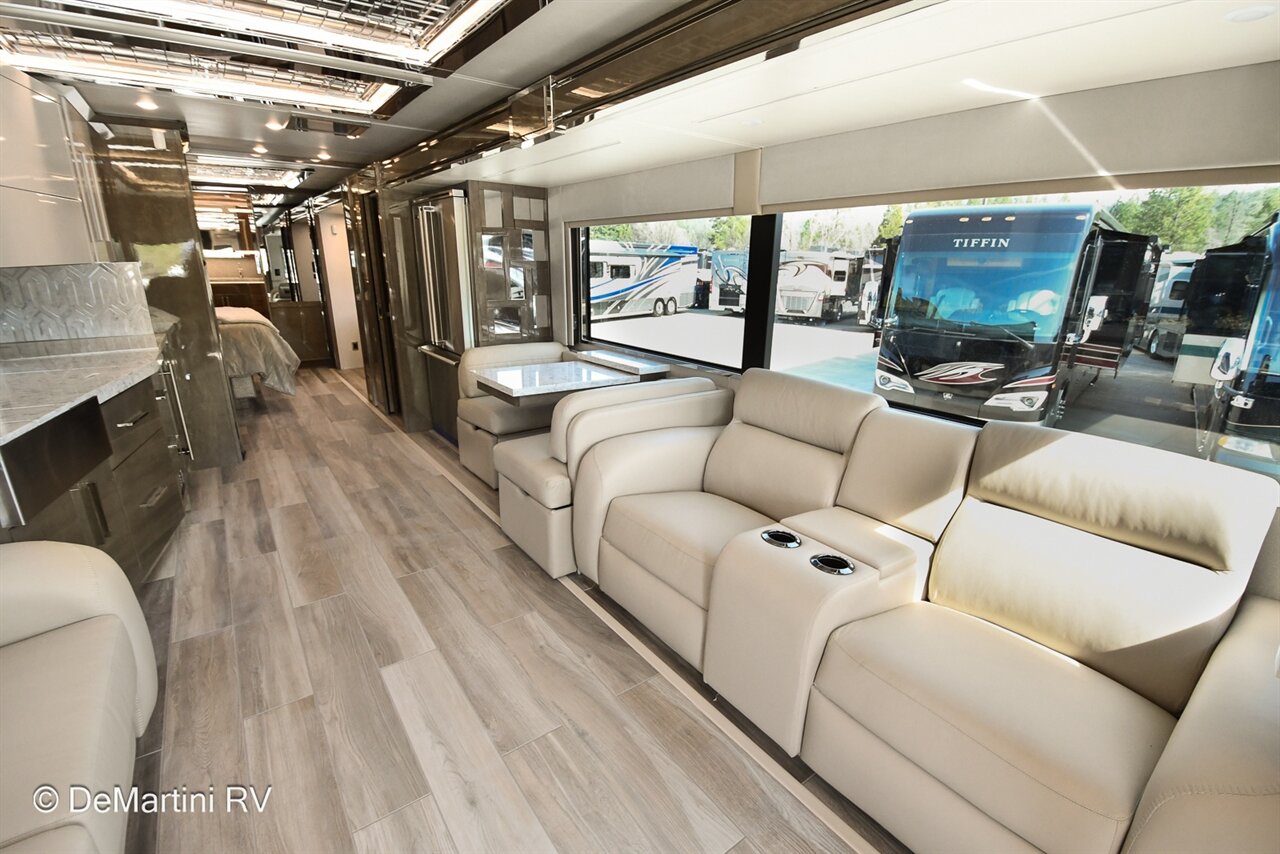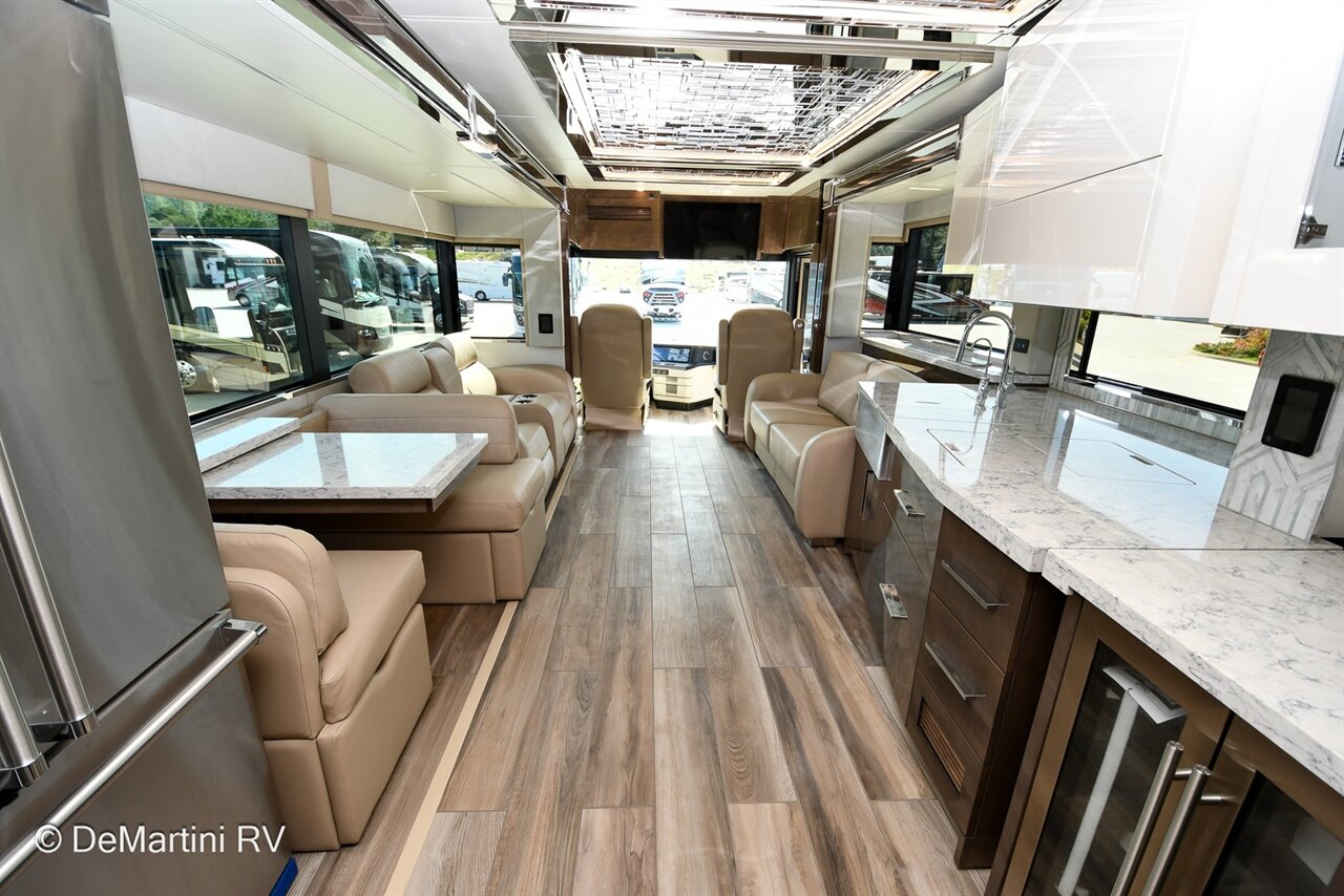 2025 Newmar King Aire 4596 Full Wall/3 Slide-Out Luxury Class A Diesel Pusher Motorhome. This King Aire is One of a Kind! SPECIAL EDITION PAINT! Featuring the gorgeous Premium Paint option in Midnight Pearl. Features include: · MIDNIGHT PEARL PREMIUM GRAPHICS · WINDSHIELD PROTECTION · SEDONA/SUMMIT MAPLE HARDWOOD CABINETRY · SPARTAN K3 CHASSIS · CUMMINS 6O5HP DIESEL ENGINE · SUB ZERO BEVERAGE CENTER · FIREPLACE IN BEDROOM · SECURITY SYSTEM · EURO BOOTH,2LEAVES,2 FLD CHRS · OVERHEAD CABINET - HEAD OF BED · Passenger Seat with Massage · THEATER SEATING · 4 SUNFREE SOLAR PANELS · KITCHEN WINDOW and more! Contact us for our LOWEST Price! Item #D3201 DeMartini RV Sales