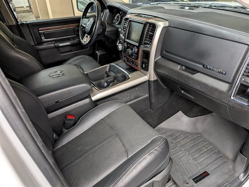- Steering and controls: Leather-wrapped steering wheel with cruise controls and (on Laramie models) heating for chilly mornings.