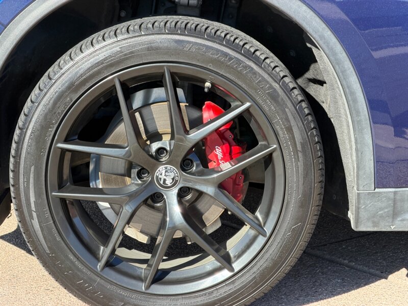 - Misano Blue Metallic paint gives the Stelvio a rich, premium finish that stands out on the road.