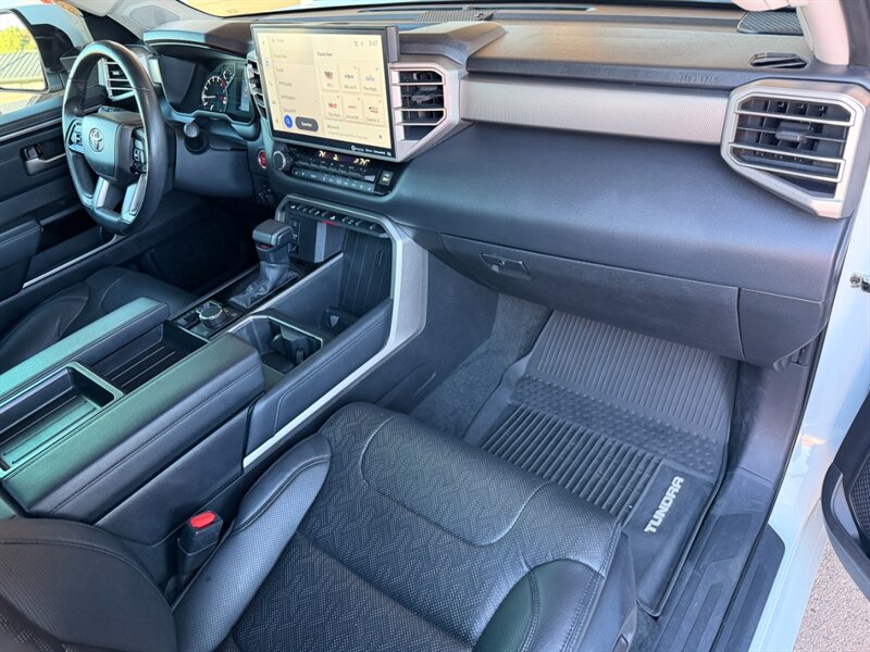 Meet this 2022 Toyota Tundra Limited finished in classic White with a Black interior — a clean, professional look that works for work or weekend. Under the hood is Toyota’s punchy 3.4L Twin-Turbo V6 (i-FORCE MAX) producing 389 hp and 479 ft-lb of torque, giving you strong acceleration and confident passing power. This Tundra returns an EPA-estimated 17 MPG city / 23 MPG highway and is in excellent overall condition.