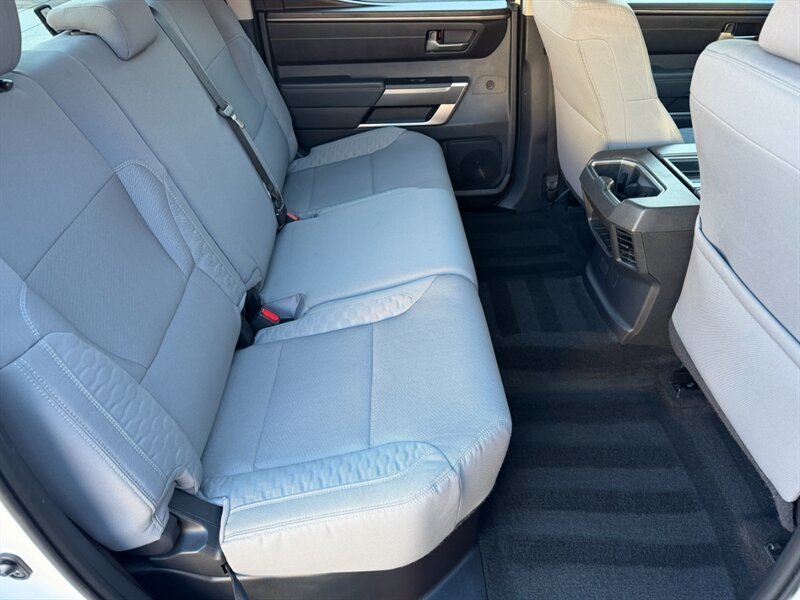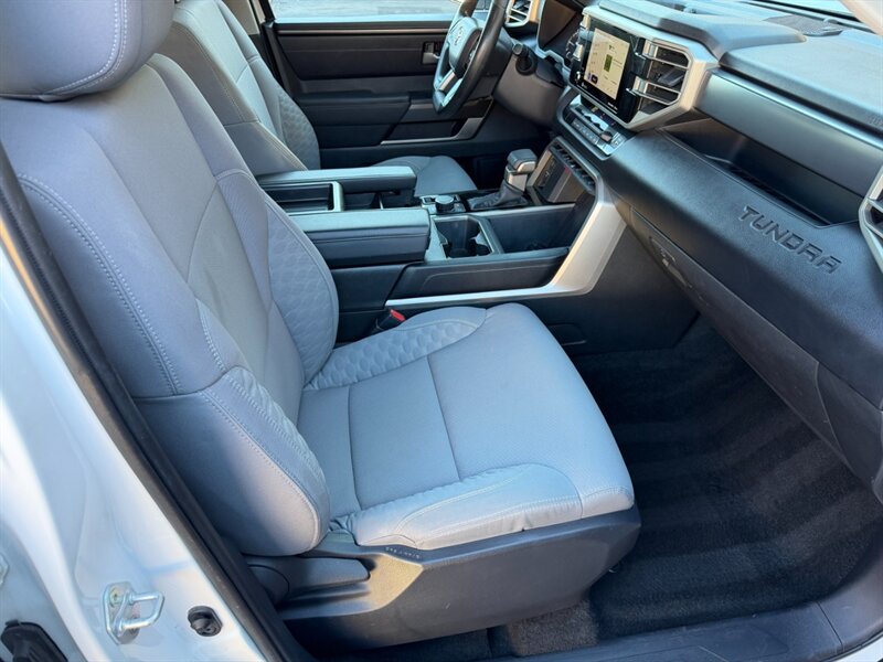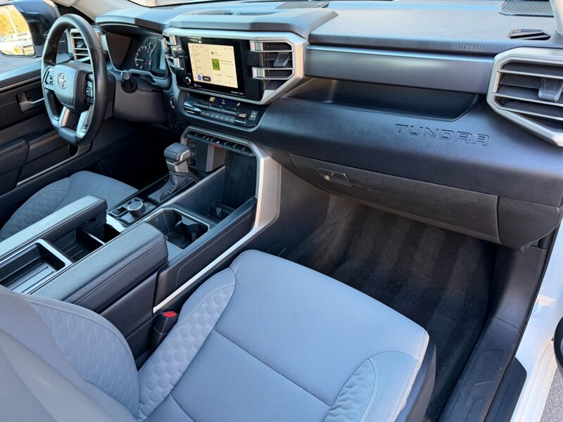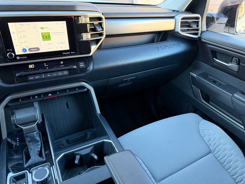 Additional features include a robust audio system that fills the cabin with high-quality sound, power-adjustable front seats for customizable comfort, and ample storage options to keep your gear organized. With a spacious bed and impressive towing capacity, this Tundra is ready for anything from weekend getaways to heavy-duty work.