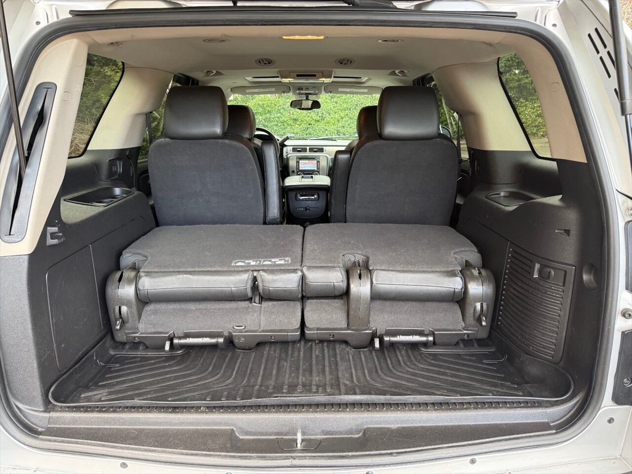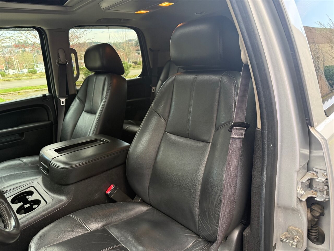 Silver Ice Metallic 2014 Chevrolet Tahoe LT Z71 — powered by a burly Vortec Iron Block 5.3L FlexFuel V8 (320 hp / 335 lb-ft) that laughs at hills and errands alike. Factory-equipped LT comforts include spacious Ebony-trimmed Leather seating for up to seven with second row buckets a configurable third row, power-adjustable driver seat, tilt/telescoping steering wheel with audio and cruise controls, tri-zone climate control, power windows/locks/mirrors, and convenient roof rails. Tech and connectivity come from Chevrolet’s infotainment system with AM/FM/CD, AUX/USB inputs, Bluetooth hands-free calling/streaming and available OnStar. Safety hardware is all there from the factory: ABS, stability and traction control, multiple airbags and child-seat anchors. The Z71 package adds genuine off-road DNA—upgraded suspension tuning, skid protection, unique wheels with all-terrain rubber and Z71 styling cues—so this Silver Ice bruiser looks as ready for the trail as it is for the school run. Sassy, classy, and built to work.