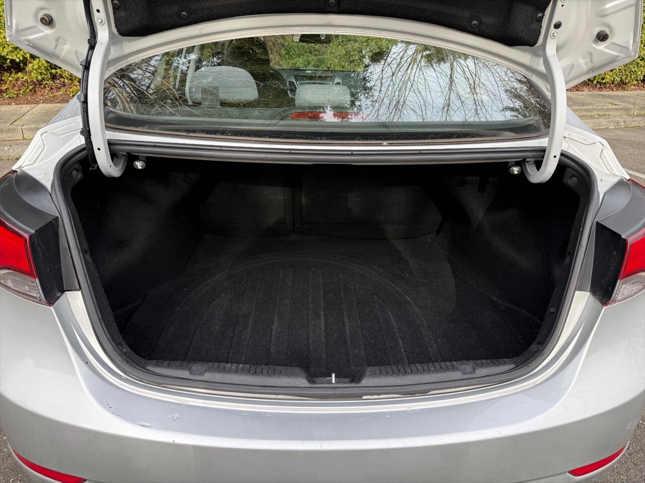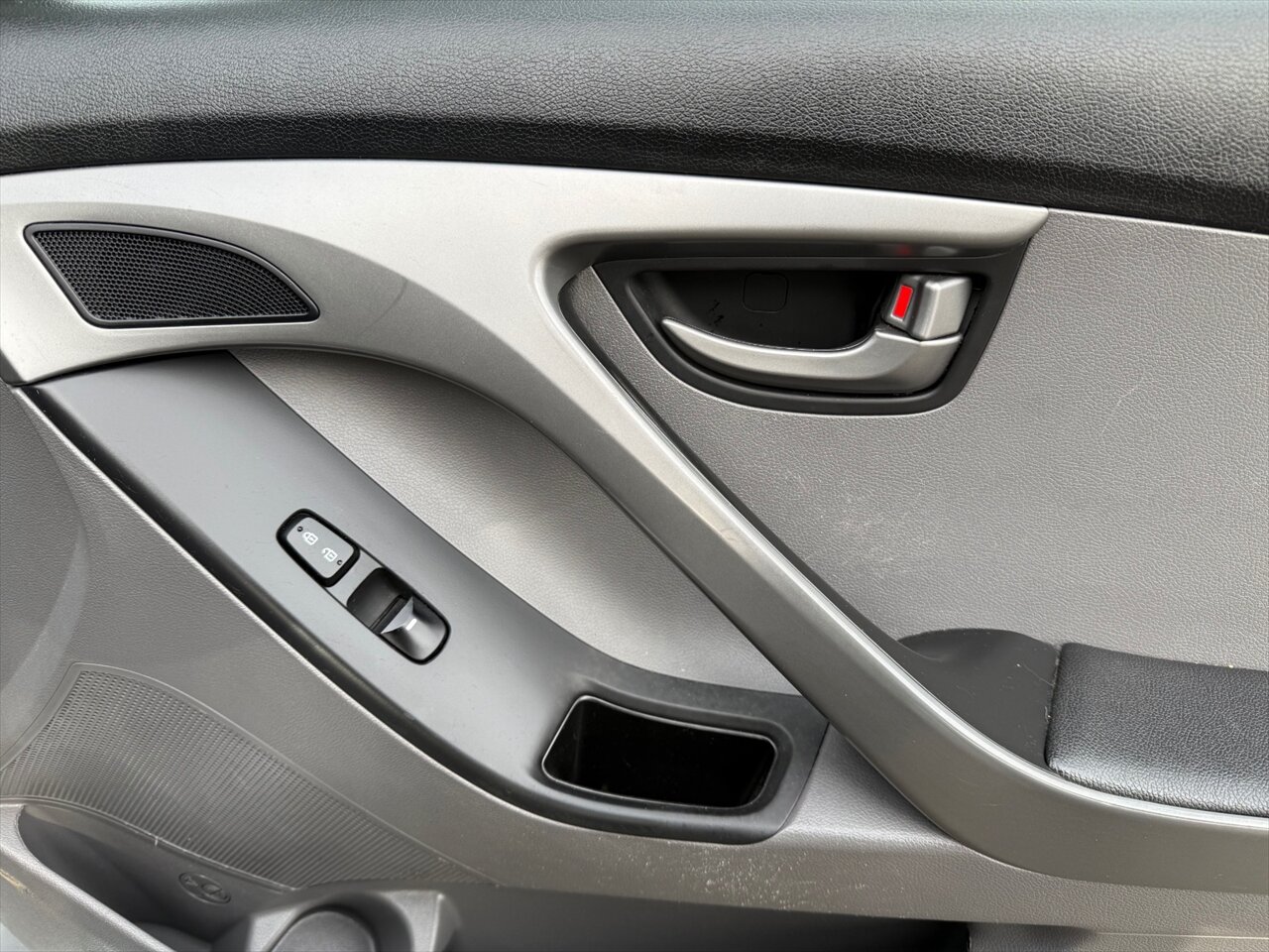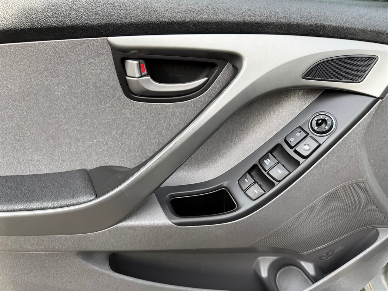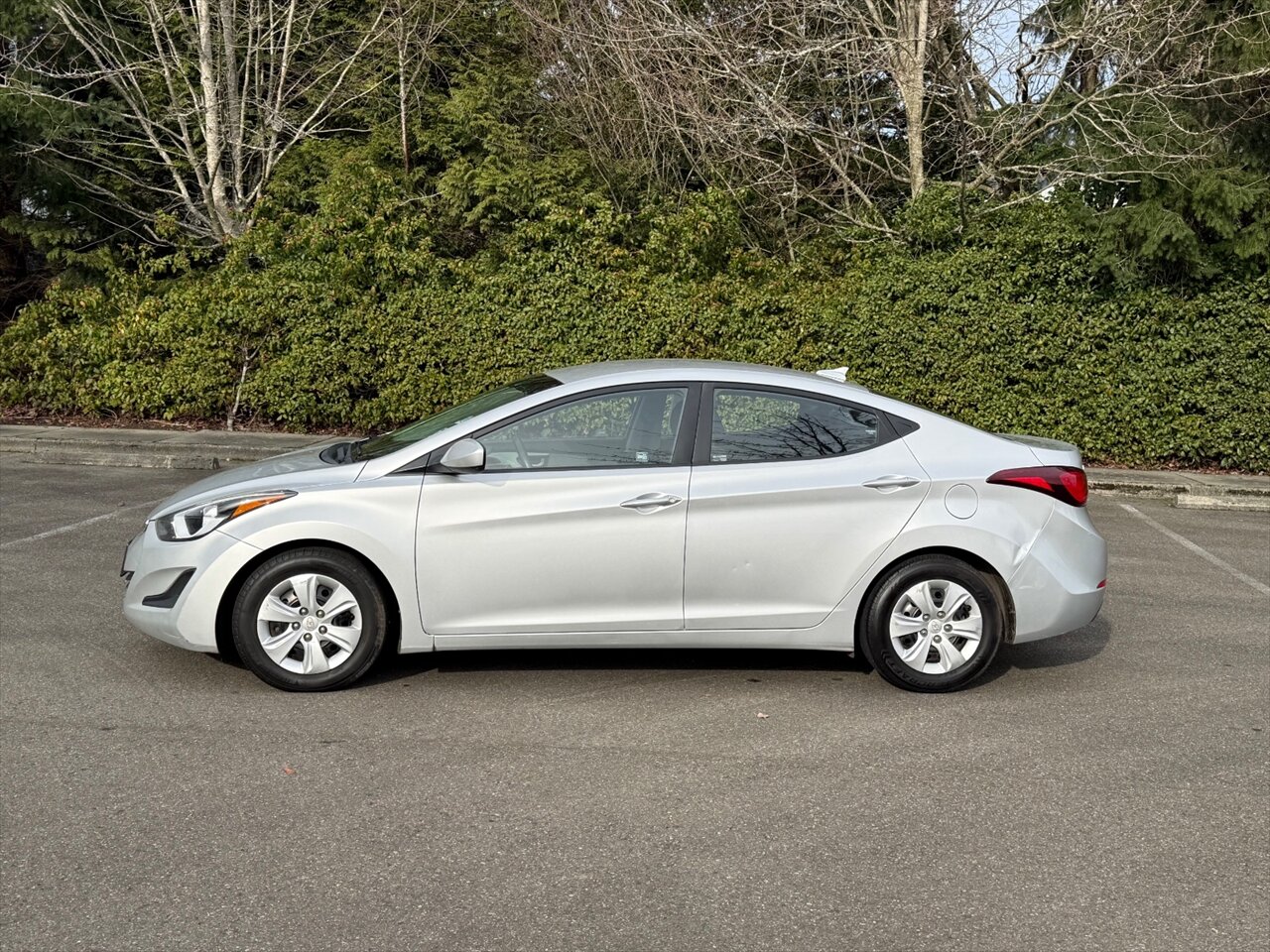 Symphony Silver on the outside, Gray cloth on the inside, and a peppy 1.8L I4 with 145 hp and 130 lb-ft of torque — the 2016 Elantra SE is small, sensible, and quietly smug. Factory features include air conditioning, full power accessories (windows/locks/mirrors), remote keyless entry, Bluetooth hands-free and audio streaming, AM/FM/CD with USB and AUX inputs, steering-wheel audio controls, cruise control, tilt steering, a 60/40 split-folding rear seat, and a handy trip computer. Safety comes standard too: ABS, electronic stability and traction control, front side airbags plus full-length side curtain airbags, and tire pressure monitoring. Practical, polished, and ready to boss the commute.
