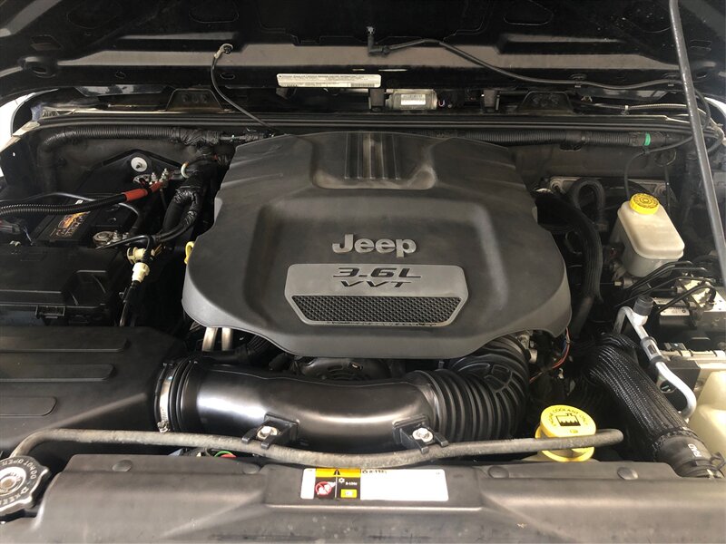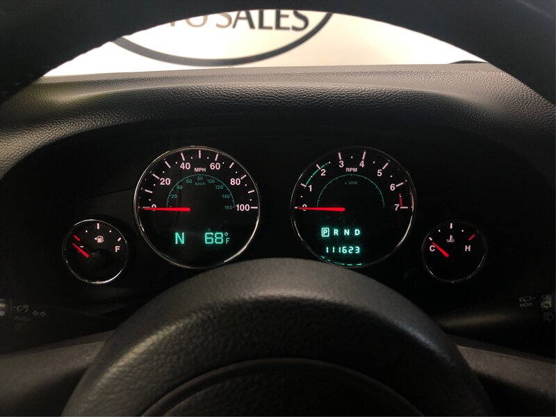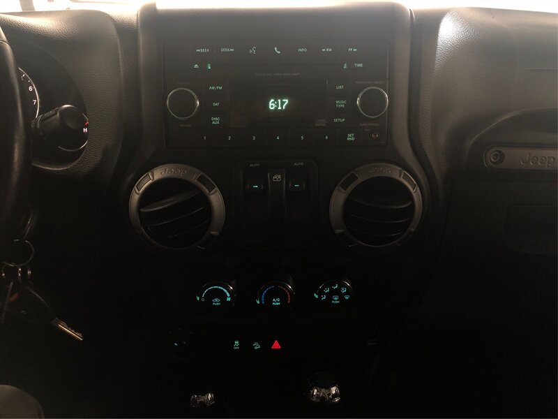 Connectivity Group (Remote USB Port, Uconnect Voice Command w/Bluetooth, and Vehicle Information Center), Power Convenience Group (Front 1-Touch Down Power Windows, Power Heated Mirrors, Power Locks, Remote Keyless Entry, and Security Alarm), Quick Order Package 24S (17'' x 7.5'' Aluminum Wheels, Air Conditioning, Chrome/Leather Wrapped Shift Knob, and Leather Wrapped Steering Wheel), Trailer Tow Group (Trailer Sway Damping and Trailer Tow w/4-Pin Connector Wiring), 16'' x 7.0'' Luxury Styled Steel Wheels, 3.21 Rear Axle Ratio, 4-Wheel Disc Brakes, 6 Speakers, ABS brakes, AM/FM radio, Black 3-Piece Hard Top, Brake assist, CD player, Cloth Bucket Seats, Compass, Deep Tint Sunscreen Windows, Driver door bin, Driver vanity mirror, Dual front impact airbags, Electronic Stability Control, Freedom Panel Storage Bag, Front anti-roll bar, Front Bucket Seats, Front Center Armrest w/Storage, Front fog lights, Integrated roll-over protection, Low tire pressure warning, Normal Duty Suspension, Occupant sensing airbag, Outside temperature display, Passenger door bin, Passenger vanity mirror, Power steering, Radio: Uconnect 130 CD/MP3, Rear anti-roll bar, Rear Window Defroster, Rear Window Wiper/Washer, SIRIUS Satellite Radio, Speed control, Steering wheel mounted audio controls, Tachometer, Tilt steering wheel, Tinted Rear Quarter & Liftgate Windows, Traction control, Trip computer, and Variably intermittent wipers.