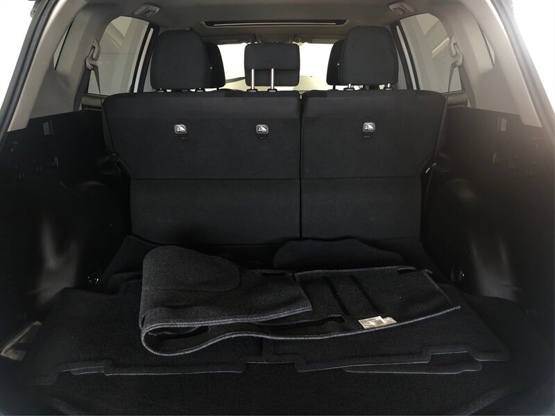 Black Cloth, Navigation System, 3.815 Axle Ratio, 4-Wheel Disc Brakes, 6 Speakers, ABS brakes, Adaptive Cruise Control, Air Conditioning, Alloy wheels, AM/FM radio: SiriusXM, Automatic temperature control, Brake assist, Bumpers: body-color, Driver door bin, Driver vanity mirror, Dual front impact airbags, Dual front side impact airbags, Electronic Stability Control, Exterior Parking Camera Rear, Fabric Seat Trim, Four wheel independent suspension, Front anti-roll bar, Front Bucket Seats, Front Center Armrest, Front dual zone A/C, Front fog lights, Front reading lights, Front Sport Seats, Heated door mirrors, Illuminated entry, Knee airbag, Leather steering wheel, Low tire pressure warning, Occupant sensing airbag, Outside temperature display, Overhead airbag, Overhead console, Panic alarm, Passenger door bin, Passenger vanity mirror, Power door mirrors, Power Liftgate, Power moonroof, Power steering, Power windows, Radio data system, Radio: Entune Audio Plus AM/FM/MP3/WMA Playback, Rear anti-roll bar, Rear seat center armrest, Rear window defroster, Rear window wiper, Remote keyless entry, Roof rack: rails only, Speed control, Speed-sensing steering, Split folding rear seat, Spoiler, Steering wheel mounted audio controls, Tachometer, Telescoping steering wheel, Tilt steering wheel, Traction control, Trip computer, Turn signal indicator mirrors, Variably intermittent wipers, and Wheels: 17" x 7.0J 5-Spoke Superchrome Alloy.