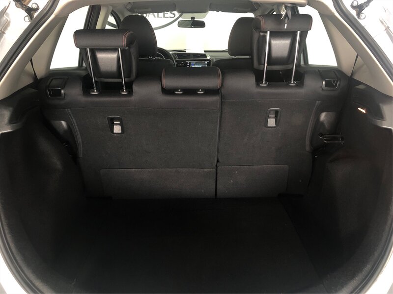 6 Speakers, ABS brakes, Air Conditioning, Alloy wheels, AM/FM radio, Apple CarPlay/Android Auto, Brake assist, Bumpers: body-color, Cloth Seat Trim, Driver door bin, Driver vanity mirror, Dual front impact airbags, Dual front side impact airbags, Electronic Stability Control, Exterior Parking Camera Rear, Front anti-roll bar, Front Bucket Seats, Front Center Armrest, Front fog lights, Front reading lights, Front wheel independent suspension, Fully automatic headlights, Illuminated entry, Leather Shift Knob, Low tire pressure warning, Occupant sensing airbag, Outside temperature display, Overhead airbag, Panic alarm, Passenger door bin, Passenger vanity mirror, Power door mirrors, Power steering, Power windows, Radio data system, Radio: AM/FM Audio System, Rear window defroster, Rear window wiper, Remote keyless entry, Security system, Speed control, Split folding rear seat, Spoiler, Steering wheel mounted audio controls, Tachometer, Telescoping steering wheel, Tilt steering wheel, Traction control, Trip computer, and Wheels: 16" Gloss-Black Alloy.