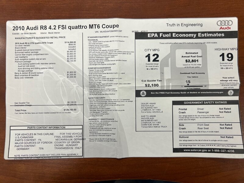 2010 Audi R8 V8 Gated. We seached over two years for this excellent example.