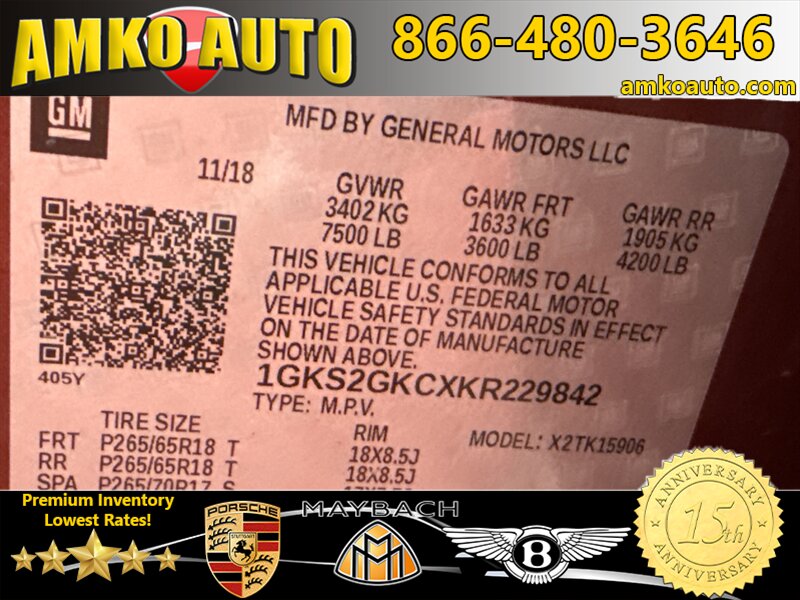 - Open Road PackageIncludes additional 9 months of SiriusXM Radio and NavTraffic service, power sunroof, rear seat Blu-Ray/DVD entertainment system, and GMC infotainment system with navigation.