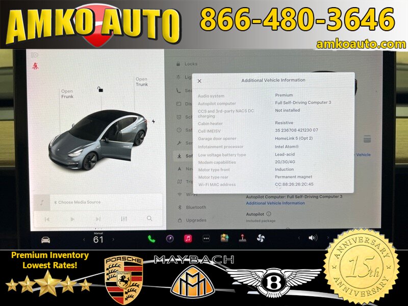 - Infotainment screen size: 15 in.