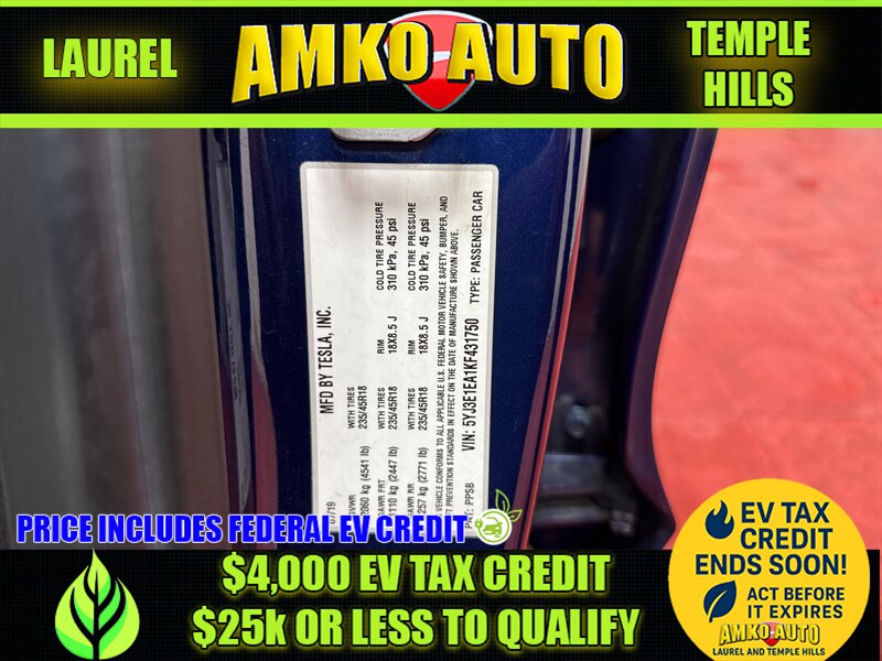2019 Tesla Model 3 Standard Range Plus 4-Door Sedan