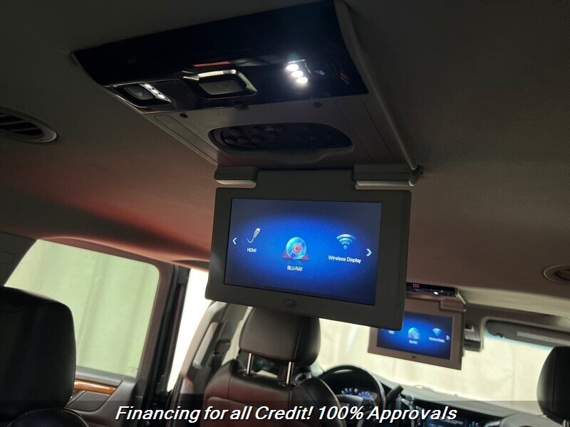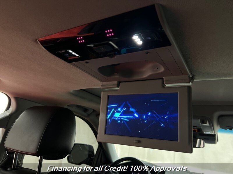 - Rear Seat Entertainment SystemIncludes two 9 inch screen DVD player (Blu-ray capable) with remote control, overhead display, four 2-channel wireless infrared headphones, auxiliary audio/video jacks on rear of center console, sound compression, CD-R and CD-R/W capability, LED backlighting display, MP3 capability, and third row DVD screen.