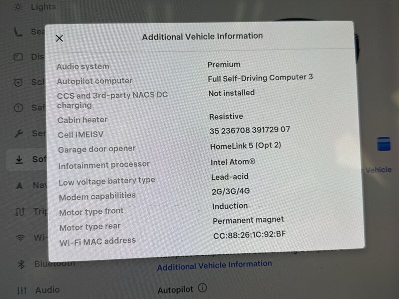 - Electric motor charger connector: Tesla (SAE J3400)