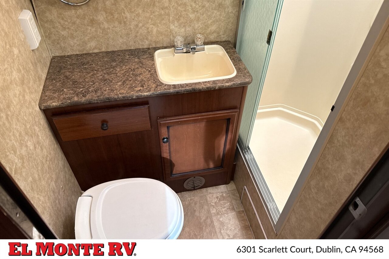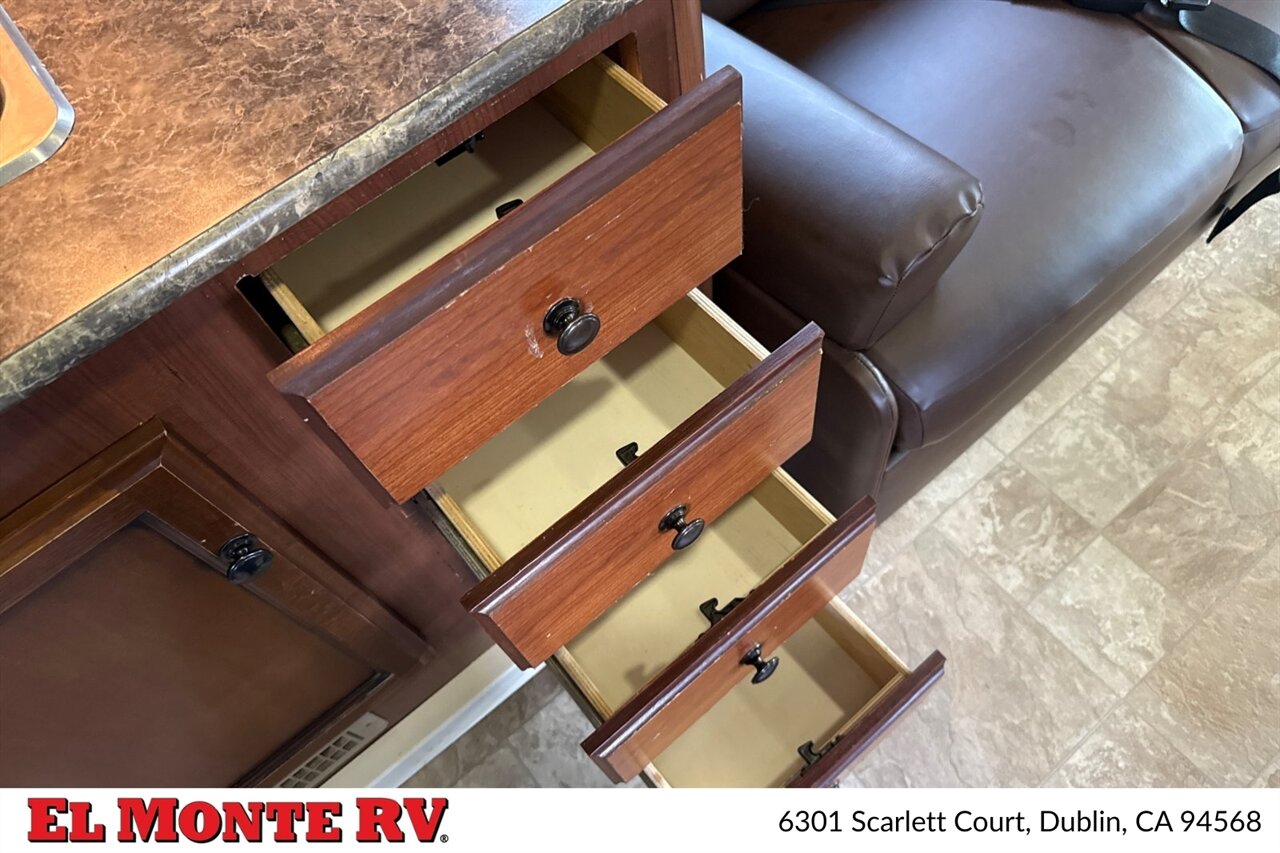 At the heart of the Jamboree Sport 31N is the powerful Ford E-450 chassis, equipped with a 6.8L Triton V10 engine. This engine is known for its reliability and impressive torque, providing the necessary power to navigate various terrains with confidence. Coupled with an automatic transmission, this motorhome delivers a smooth driving experience, whether you’re cruising down the highway or tackling winding mountain roads.