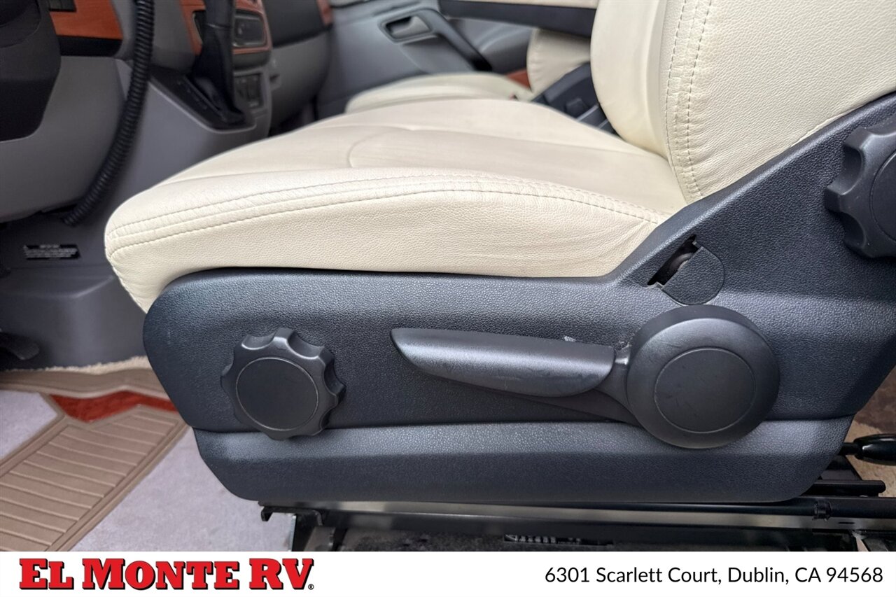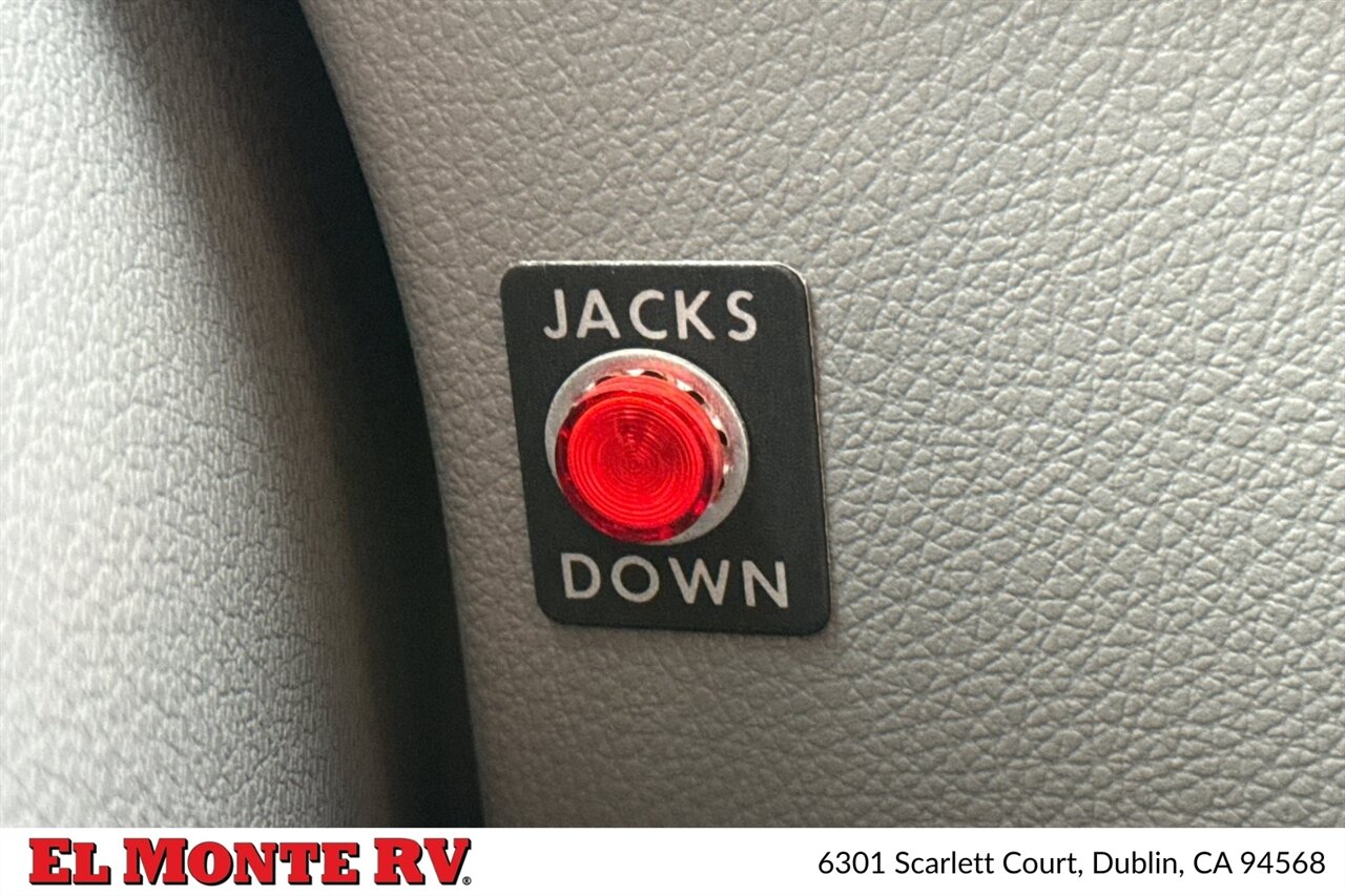The cab area features comfortable captain's chairs that swivel to face the living space, making it easy to engage with family and friends. The dashboard is user-friendly, equipped with a comprehensive infotainment system that includes a navigation system, Bluetooth connectivity, and a premium audio system, ensuring that you stay connected and entertained on the road.