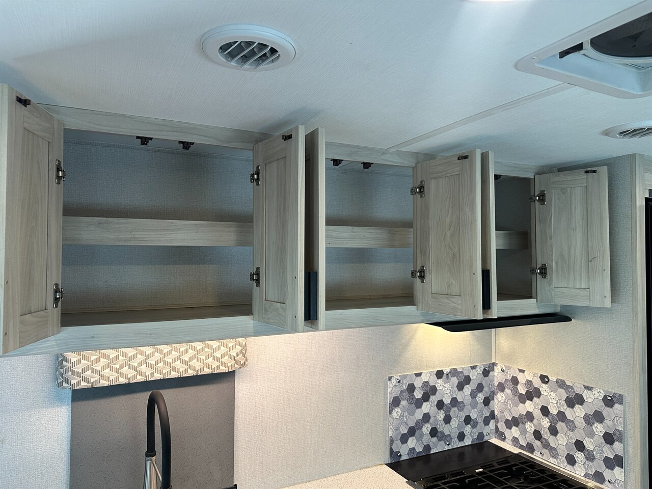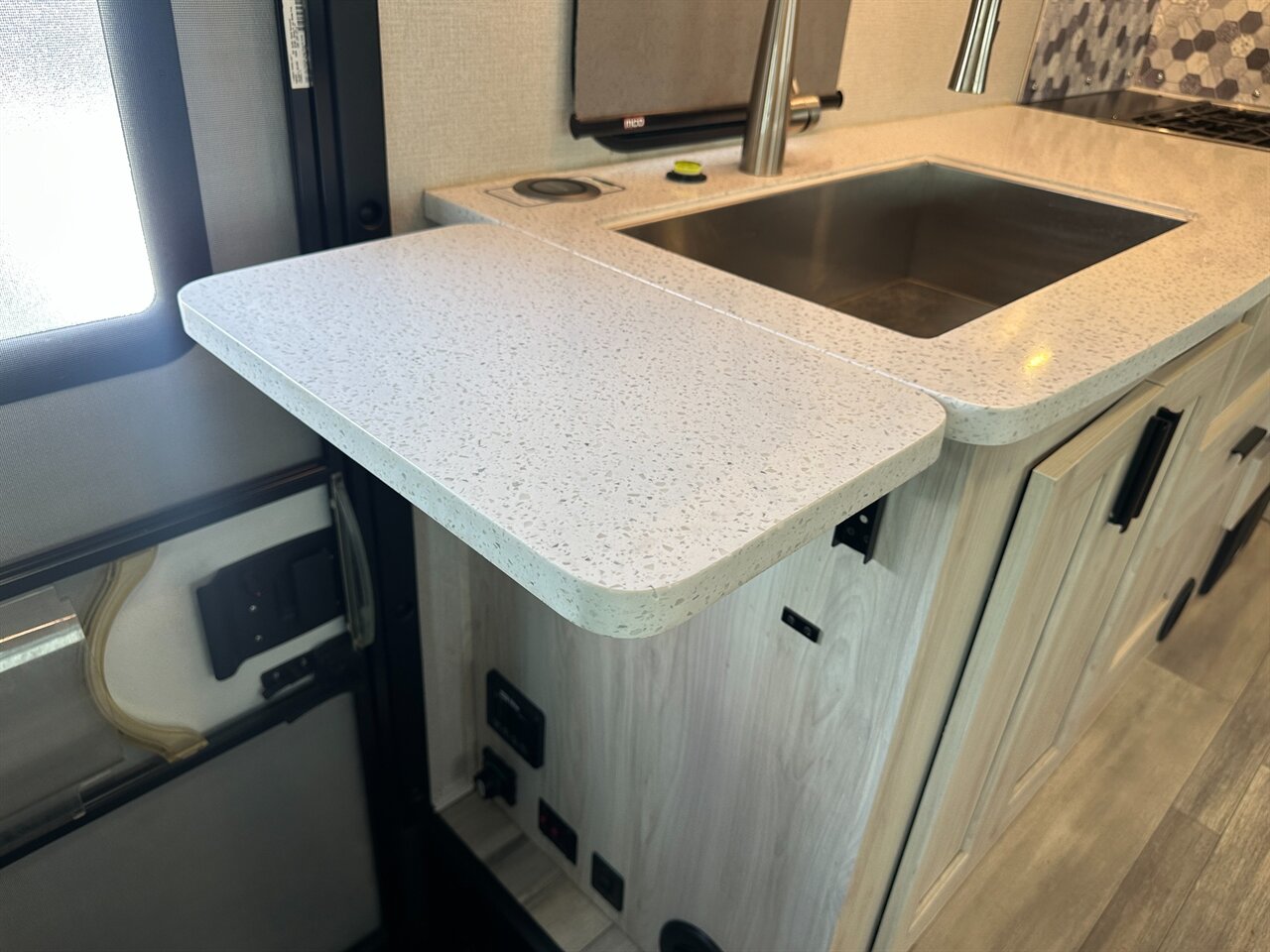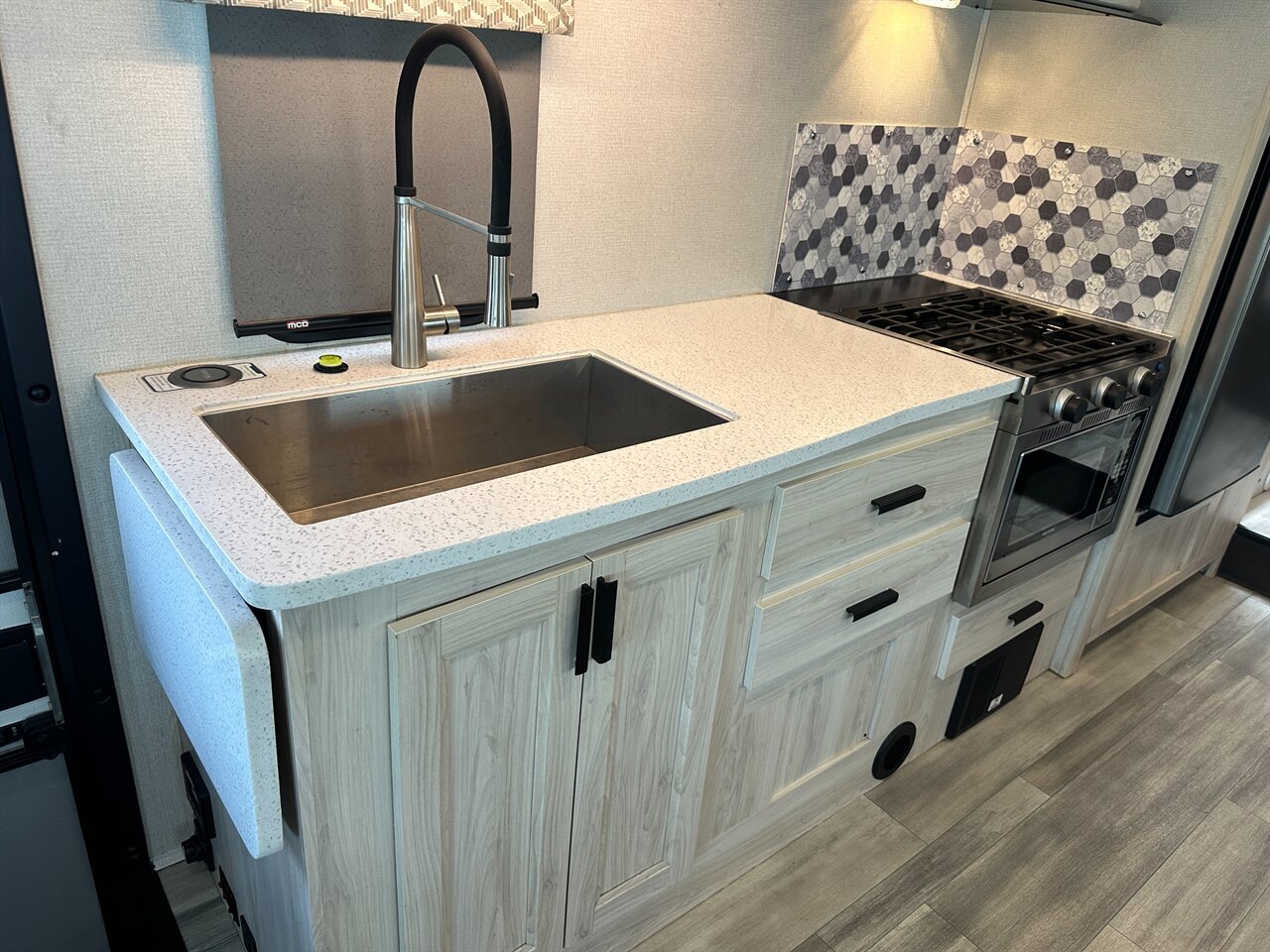 Solid surface countertops and deep sink for easy meal prep