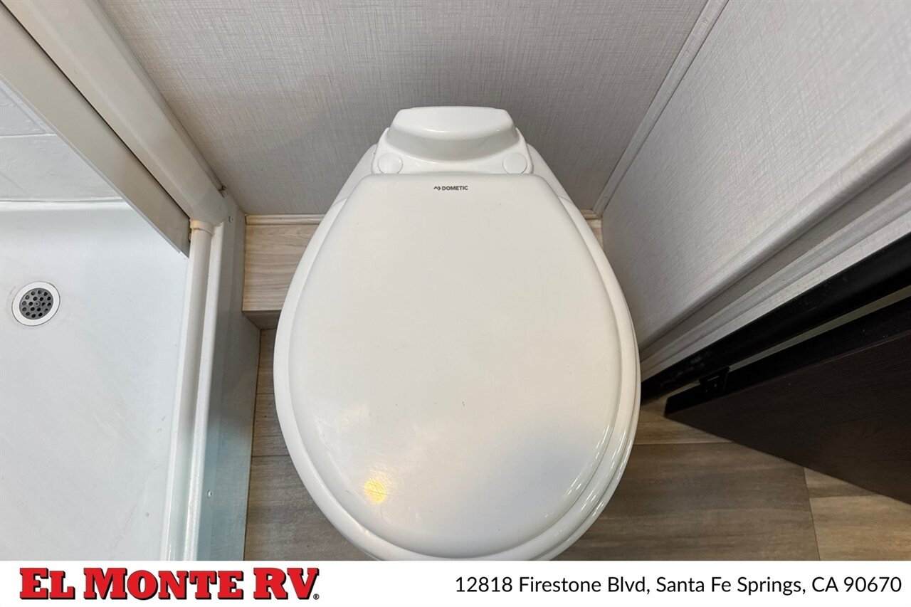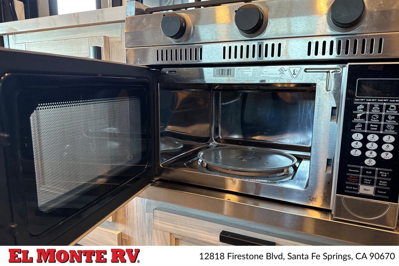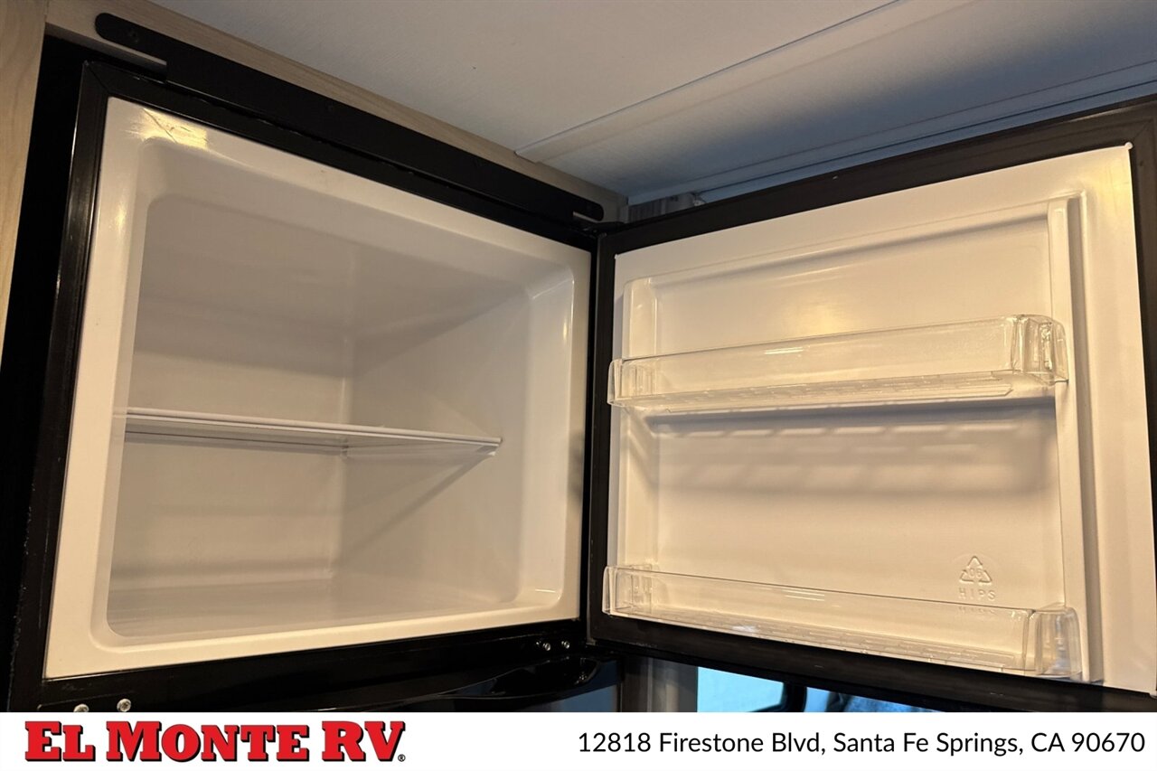 - Residential-style refrigerator (12V / gas / electric configurations are factory common on this platform) sized to provide practical meal-prep capacity on the road.