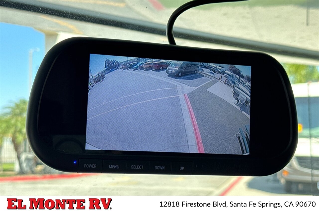 - Integrated backup camera and monitor system to assist in reversing and campsite positioning; large panoramic windshield and thoughtfully placed mirrors improve visibility on the road.