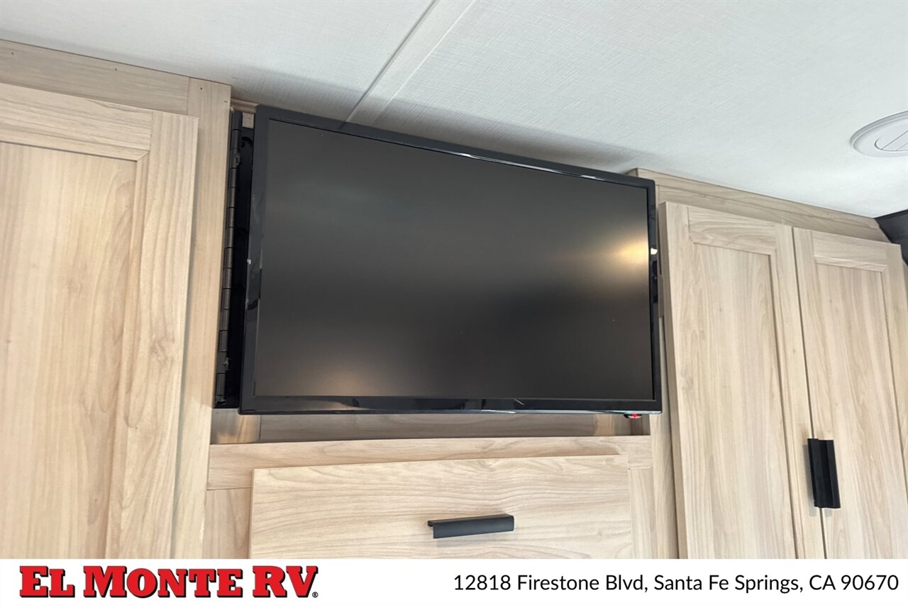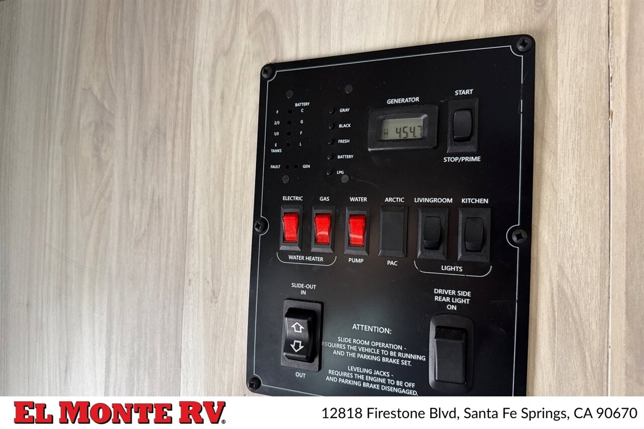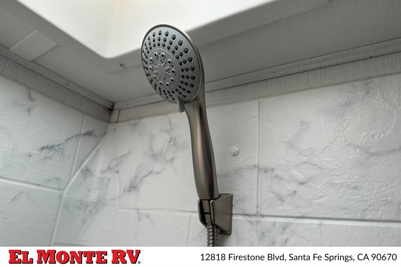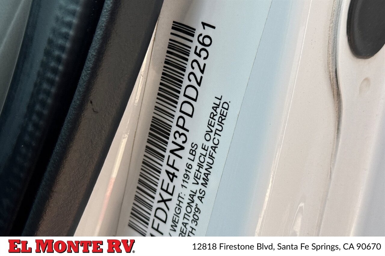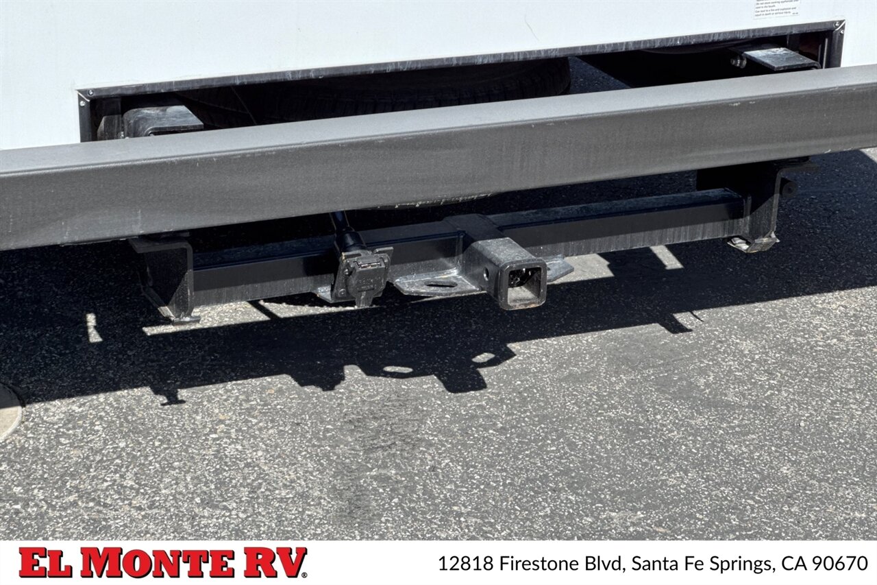 Built on a proven Ford commercial cutaway chassis, the 2860DS is factory-equipped with a heavy-duty V8 gas drivetrain and automatic transmission optimized for highway cruising and tow capability. The chassis package includes power steering, power brakes with ABS, multiple heavy-duty suspension components, and a full complement of factory safety features such as driver and passenger airbags. Exterior mirror assemblies are power-adjustable and heated, and a factory rearview camera and integrated monitoring system are standard for easier maneuvering and backing.