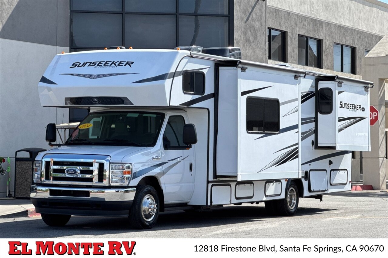 This 2024 Forest River Sunseeker 2860DS is a Class C coach offered in excellent overall condition, representing a well-balanced combination of maneuverability, live-ability and factory-appointed comfort. The Sunseeker 2860DS is a dual-slideout layout designed to maximize interior living space for families or couples who travel frequently. The coach retains its factory-installed equipment and trim, and it has been maintained to provide reliable operation and a like-new appearance.