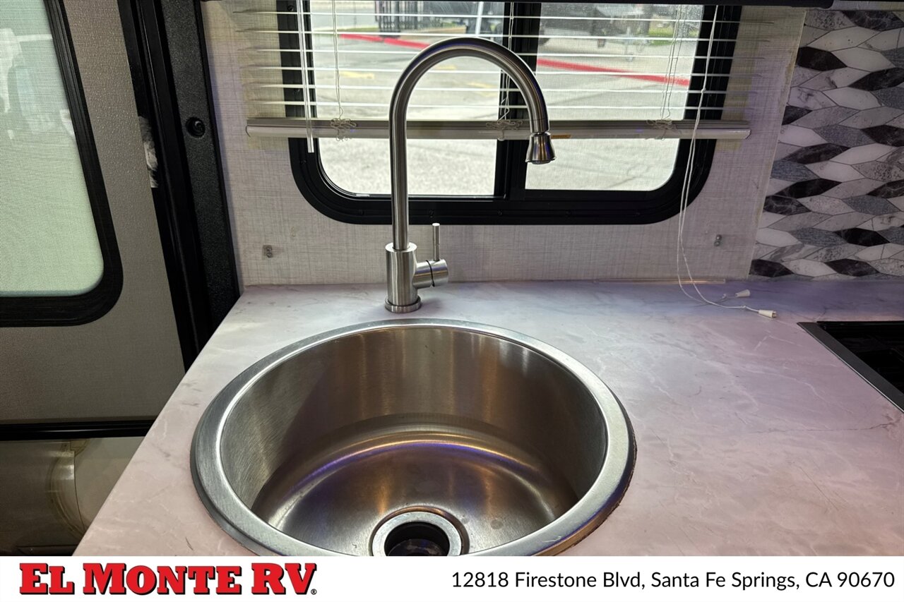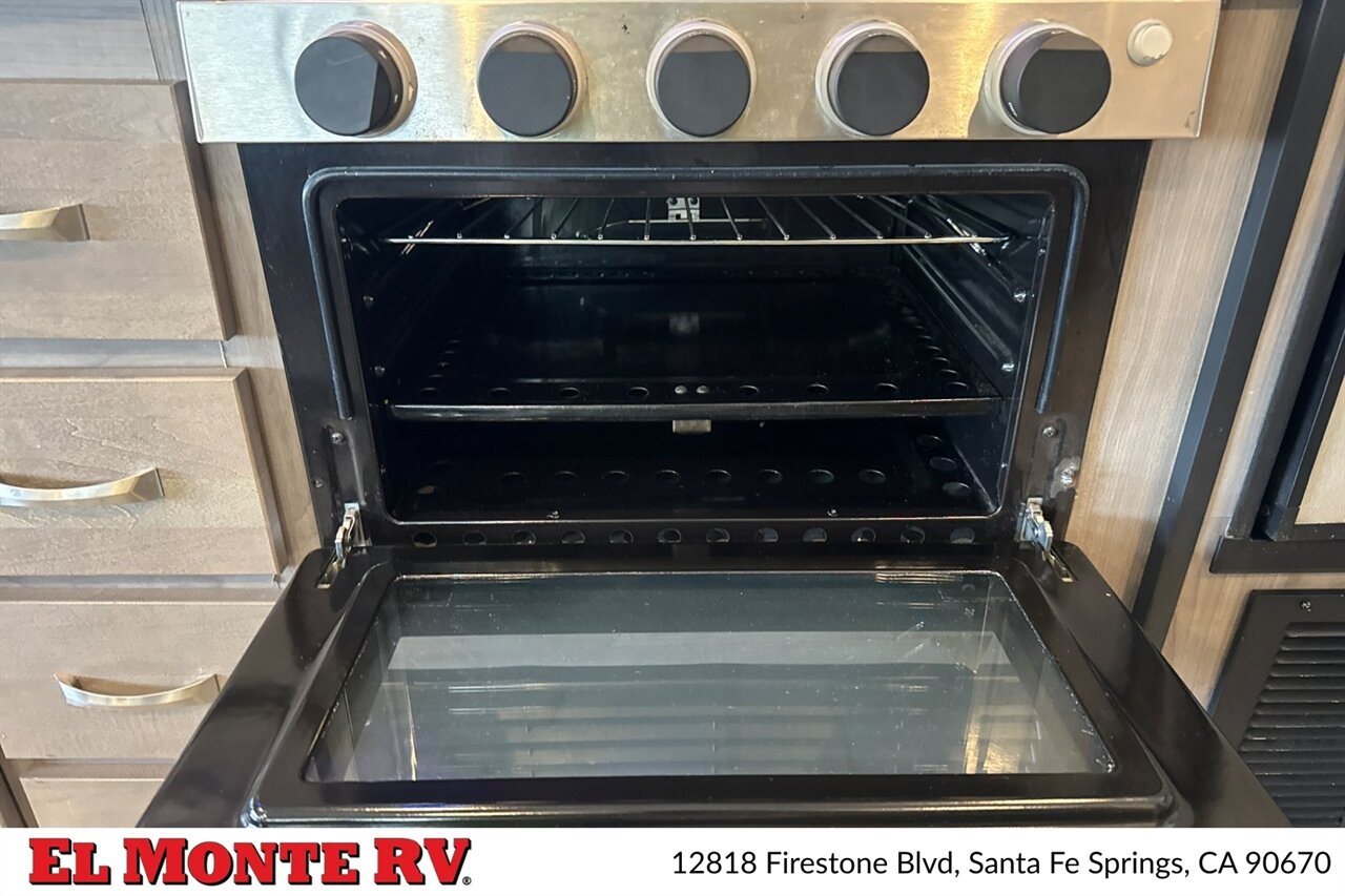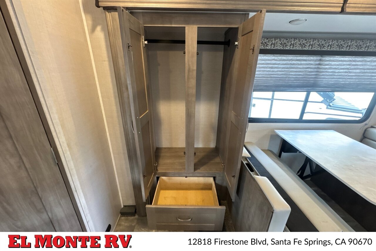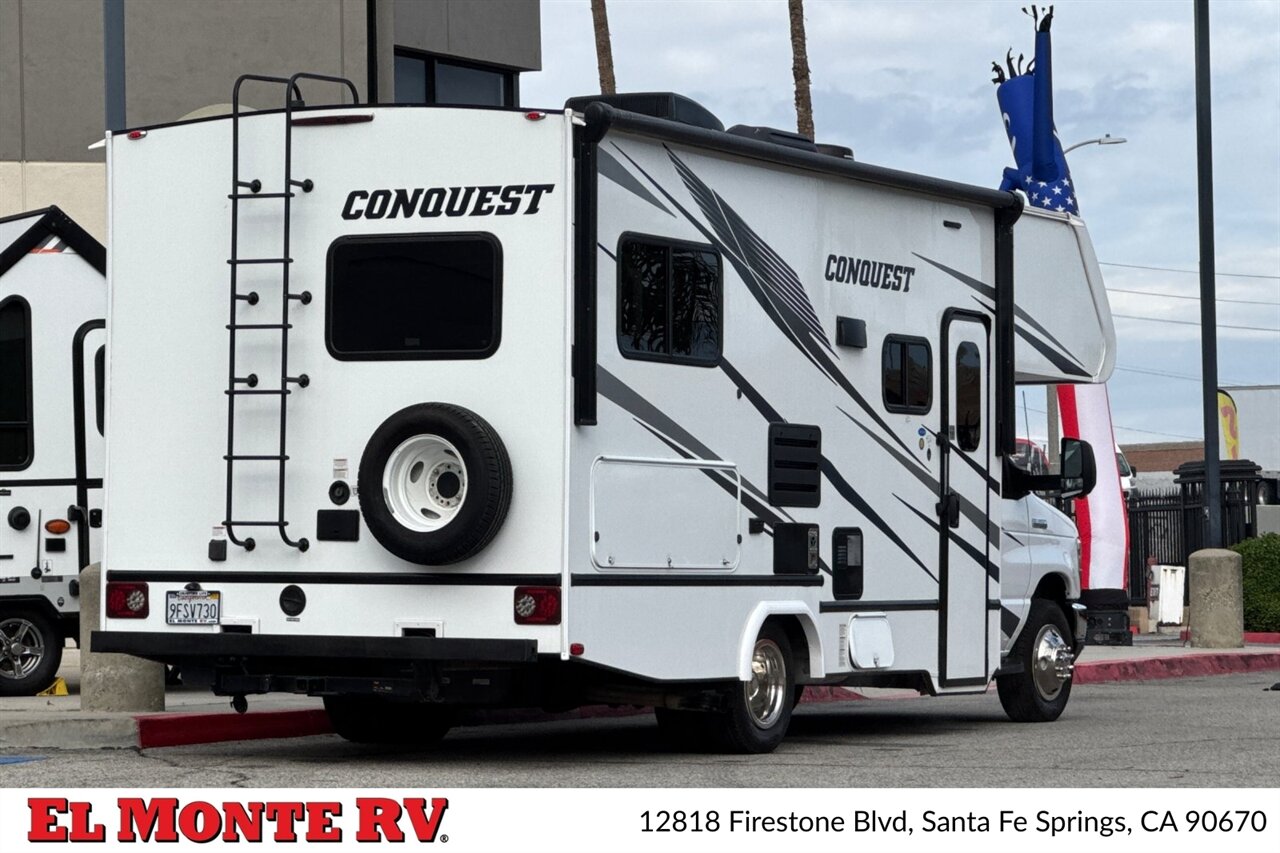 A high-quality fiberglass front cap provides both style and protection against the elements. The exterior is adorned with a striking graphics package that adds a touch of sophistication. The Conquest 6238 comes equipped with a power awning with LED lighting, creating a perfect outdoor living space for relaxation and entertainment. Additionally, the motorhome features ample exterior storage compartments, ensuring you have all the space you need for your travel gear.