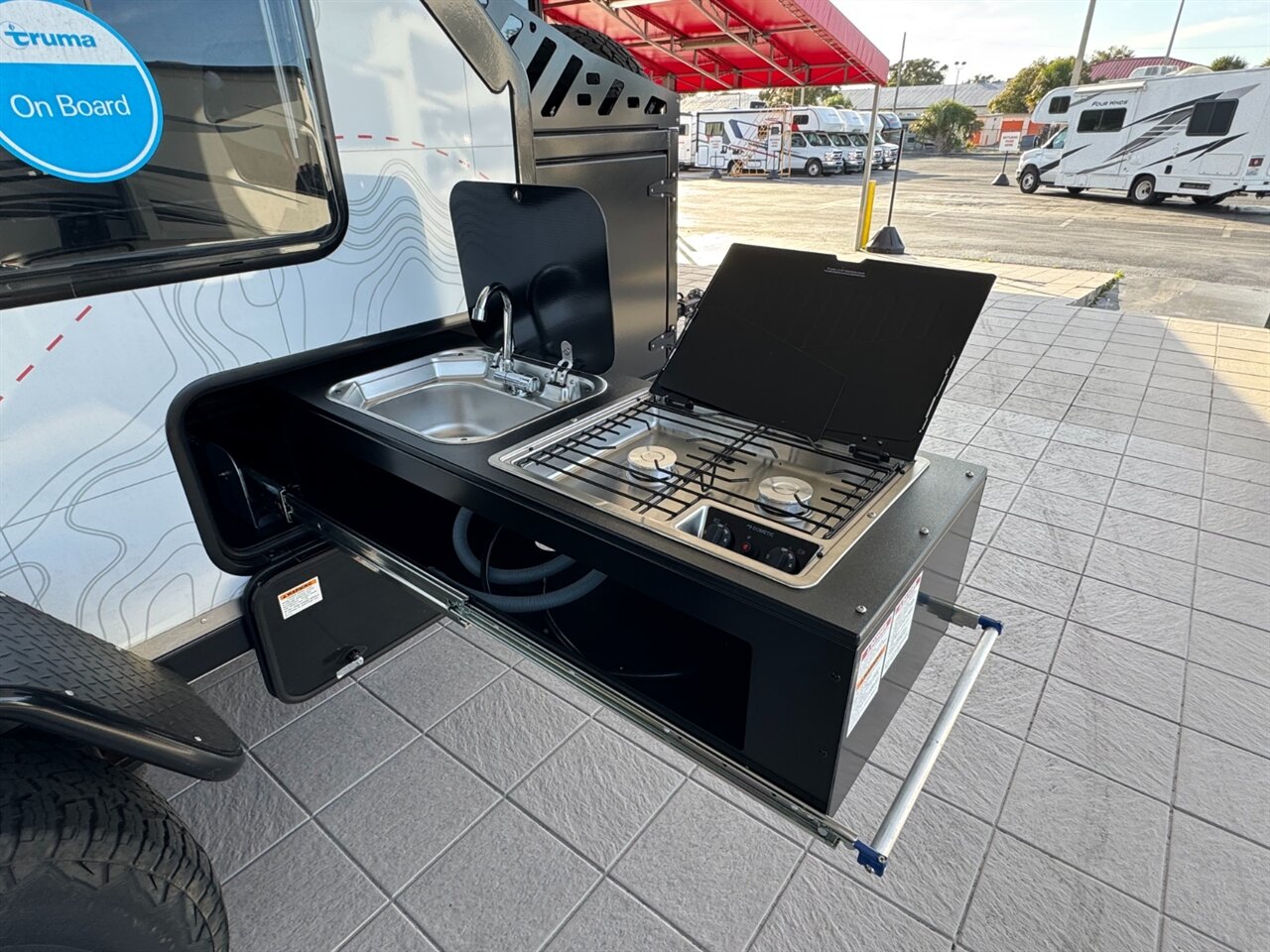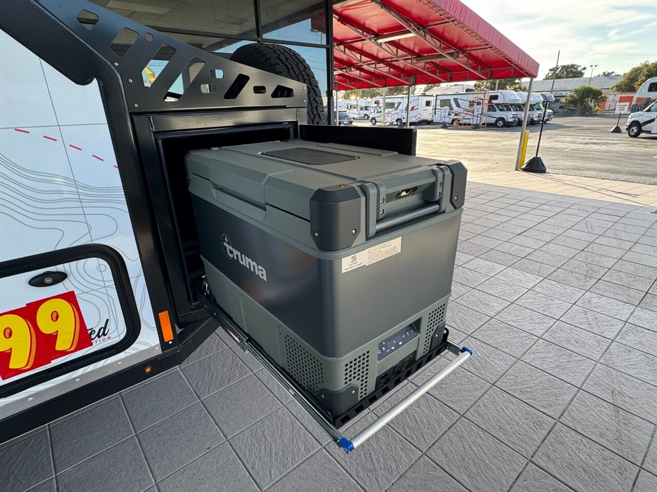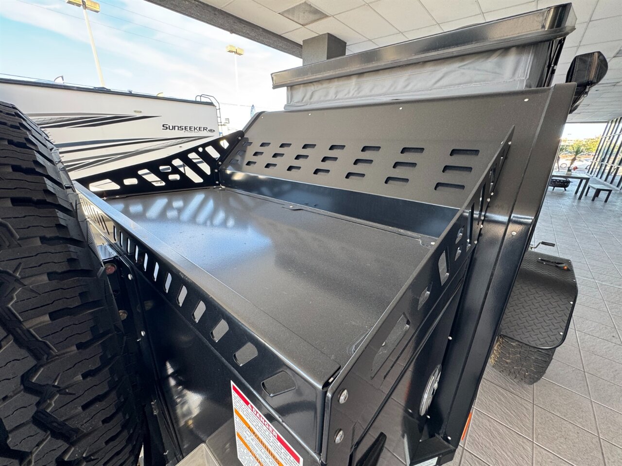The integrated LED lighting system enhances visibility during nighttime excursions, while strategically placed exterior storage compartments provide ample space for gear, tools, and outdoor equipment. The vehicle also features a spacious awning that can be easily deployed, providing shade and shelter for outdoor activities.