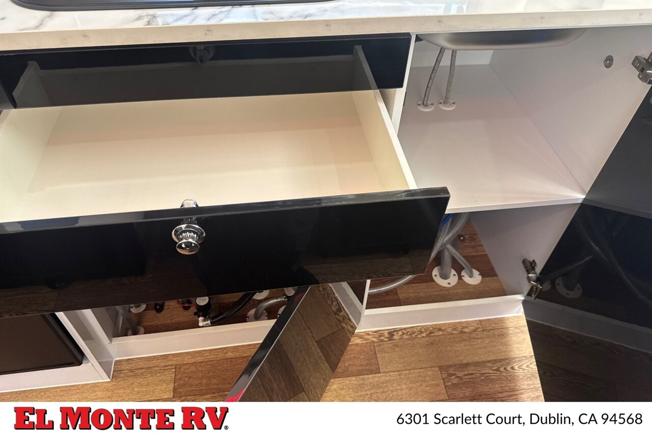 - Ample storage cabinets and drawers throughout the interior for organized living.