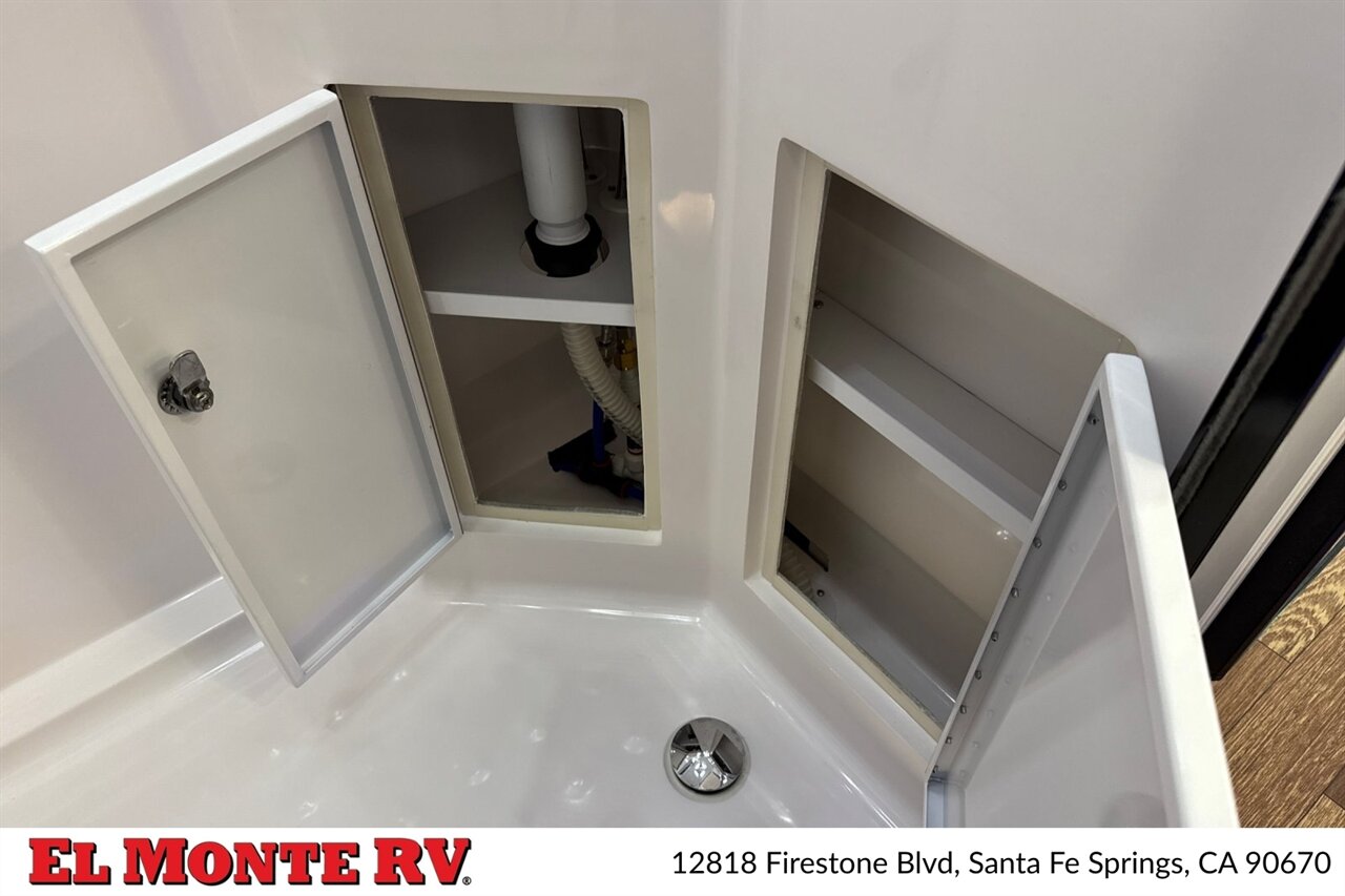 - Entry and Convenience: Flush-mounted entry door with integrated window and screen, keyed marine-grade entry step, and LED porch light. Exterior storage compartments with slam-latch doors provide secure, easy-access storage for gear and camp essentials.