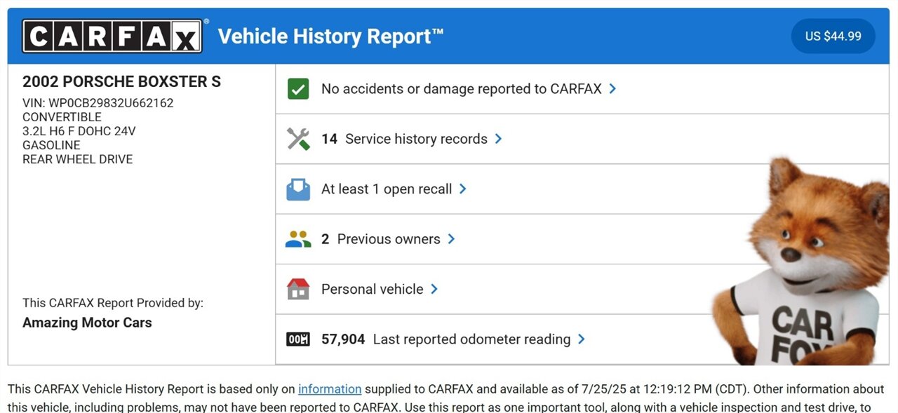 2002 Porsche Boxster S CONVERTIBLE LEATHER ONLY 57K MILES TEXAS CAR 2-Door Convertible
