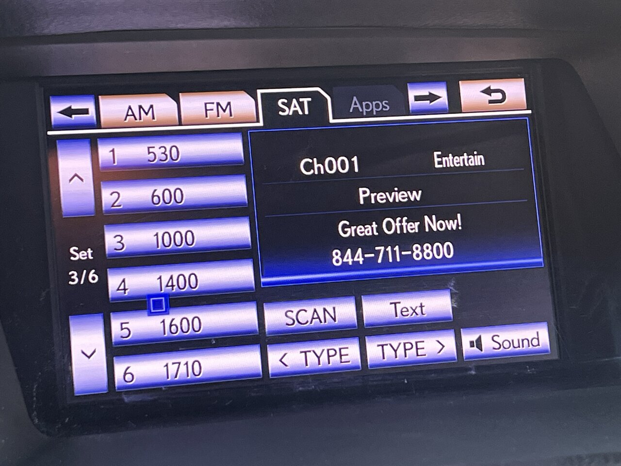- Satellite radio: SiriusXM