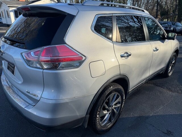 2016 Nissan Rogue SL in excellent overall condition with a clean CARFAX. Powered by a 2.5L I4 engine producing 170 hp and 175 lb-ft, paired to Nissan’s Xtronic CVT. Factory-equipped SL features include leather-appointed seating with heated front seats and power-adjustable driver seat with memory, dual-zone automatic climate control, keyless entry with push-button start and remote locking, and a power panoramic moonroof. Technology and safety features include a NissanConnect touchscreen with navigation, Bluetooth, USB/AUX inputs and Bose premium audio, a rearview camera with Around View Monitor, Blind Spot Warning and Rear Cross Traffic Alert, ABS with traction and stability control, multiple airbags and TPMS. Convenience items include 60/40 split folding rear seats (sliding capability), roof rails, 18-inch alloy wheels, fog lights, cruise control and steering-wheel-mounted audio/phone controls.