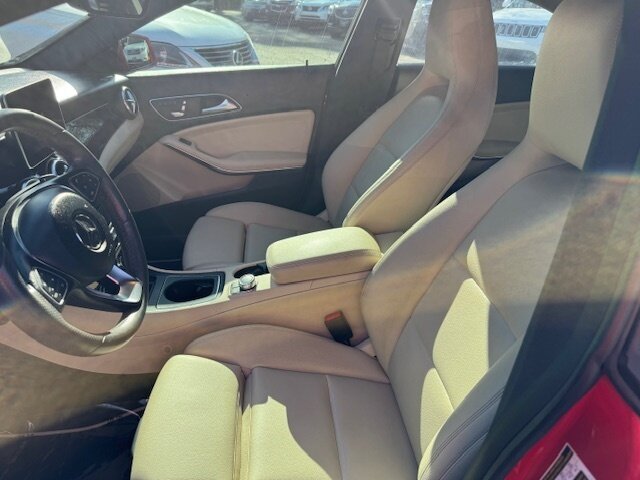 Introducing the 2018 Mercedes-Benz CLA 250 4MATIC, a stylish and efficient luxury sedan finished in a striking Jupiter Red exterior with a sophisticated Cream interior. This model is powered by a 2.0L Turbo I4 engine, delivering 208 horsepower and 258 ft-lbs of torque for a spirited driving experience.