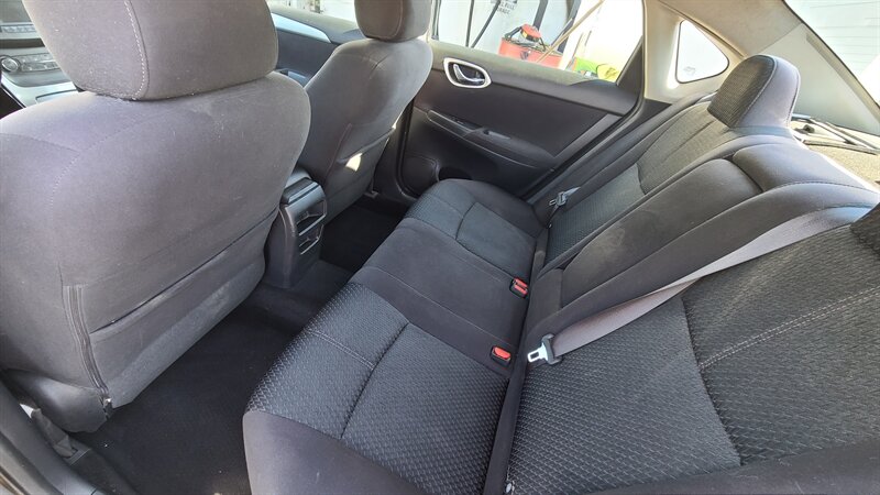 2014 Nissan Sentra SV powered by a 1.8L I4 (130 hp, 128 lb-ft) with EPA estimates of 30 MPG city and 39 MPG highway. Factory-equipped with air conditioning, cruise control, power windows and door locks, remote keyless entry, steering-wheel audio controls, Bluetooth hands-free calling and audio streaming, AM/FM/CD/MP3 stereo with USB/AUX inputs, cloth seating with a 60/40 split-folding rear seat and alloy wheels. Standard safety features include ABS, electronic brake-force distribution, traction control and multiple airbags. Has a clean CARFAX and a one-owner history.