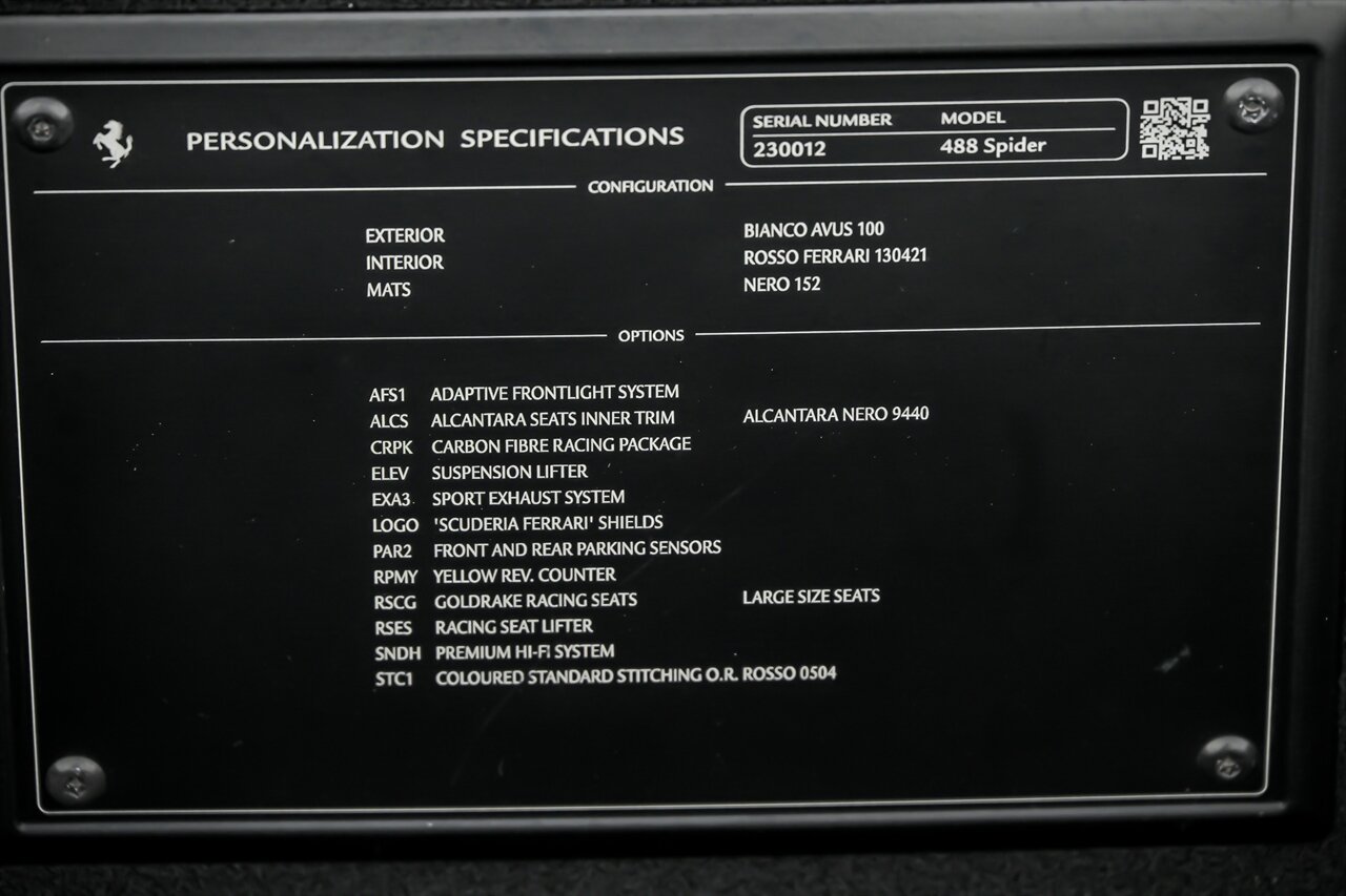 2018 Ferrari 488 Spider CARBON WHEEL & RACING SEATS