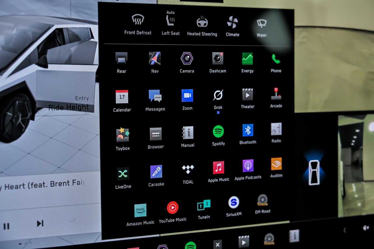 - Smart device app function: camera system display, horn/light operation, lock operation, maintenance scheduling, maintenance status, phone as a key, security event/collision alert, vehicle location, window operation