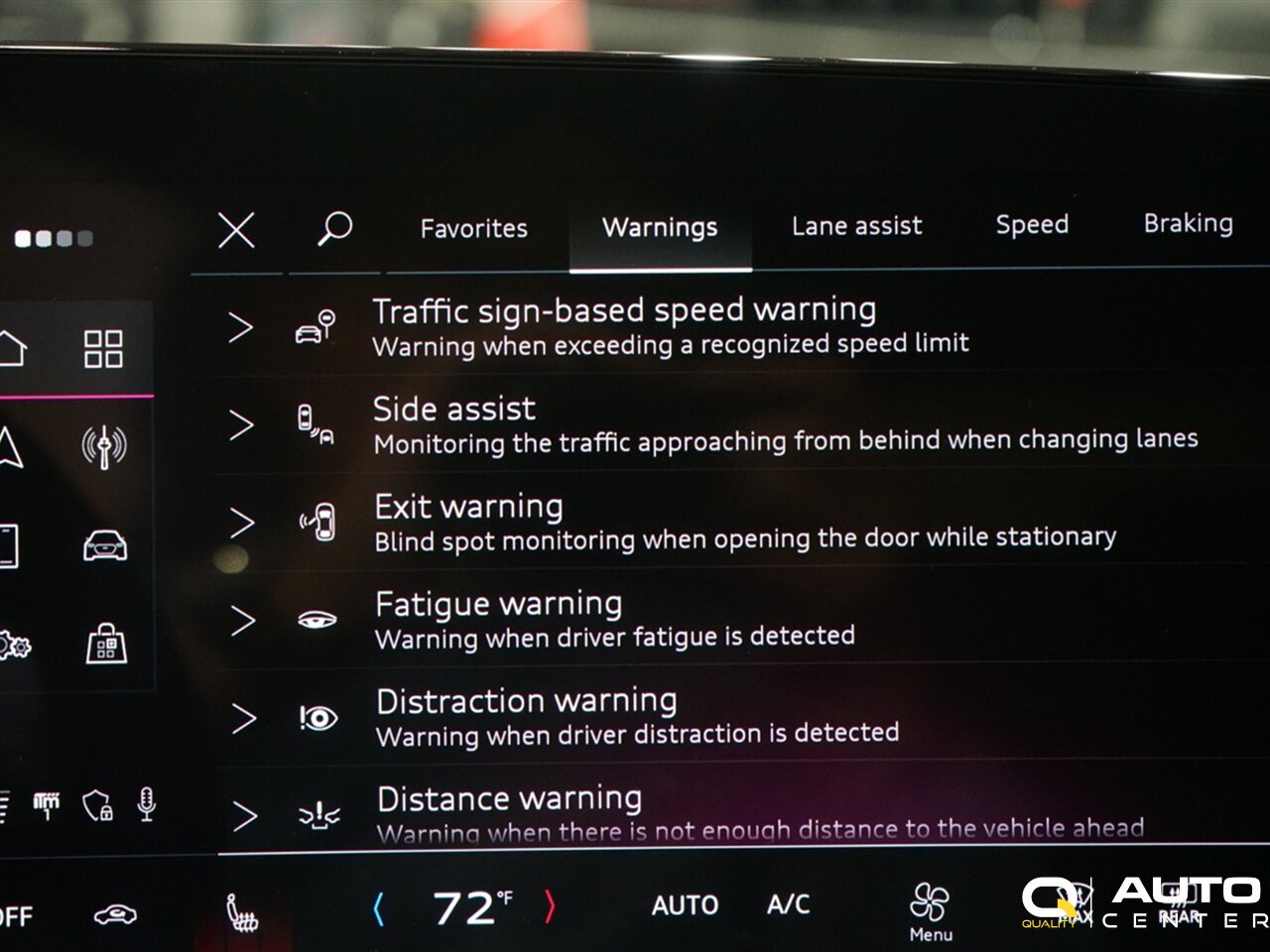 - Pre-collision warning system: audible warning, intersection/junction cross, intersection/junction turn, pedestrian detection, vibrating steering wheel, visual warning