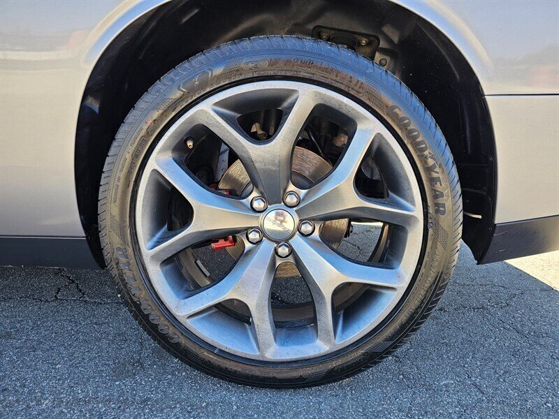 Safety and driveability are covered by a full complement of factory systems: multi-stage front airbags, side airbags with curtain protection, anti-lock brakes (ABS), electronic stability and traction control, and a tire pressure monitoring system. The exterior styling is classic Challenger—bold lines, a muscular stance, and bright accents that look great in Billet Silver Metallic. Alloy wheels, projector-style headlamps, and integrated daytime running lights complete the look.