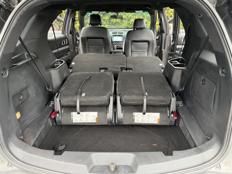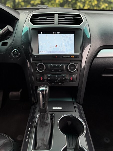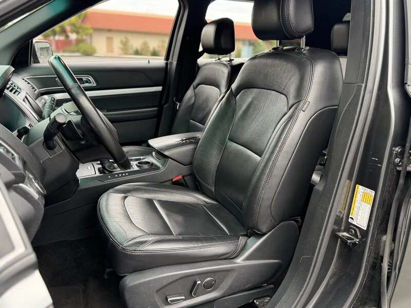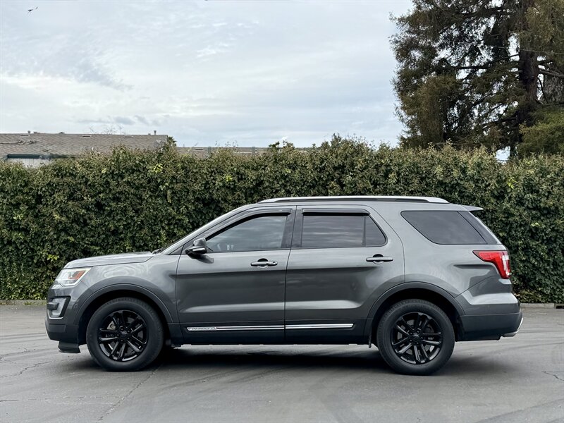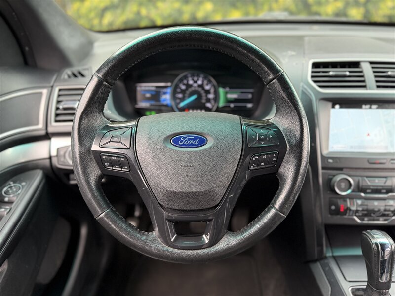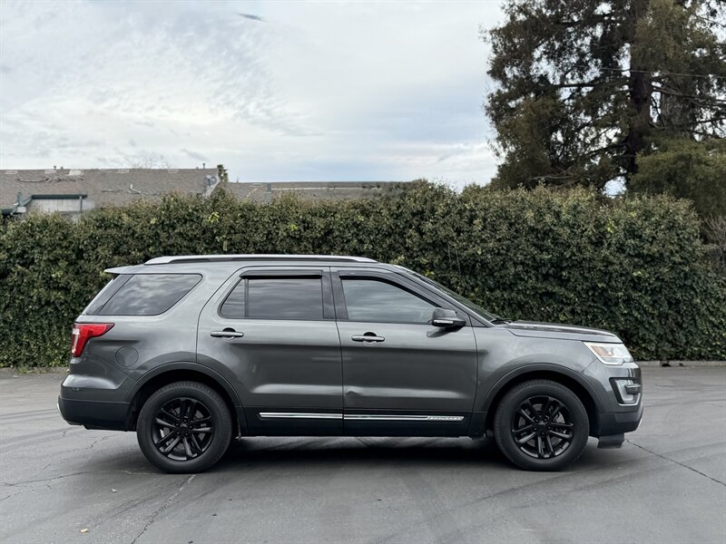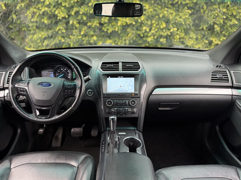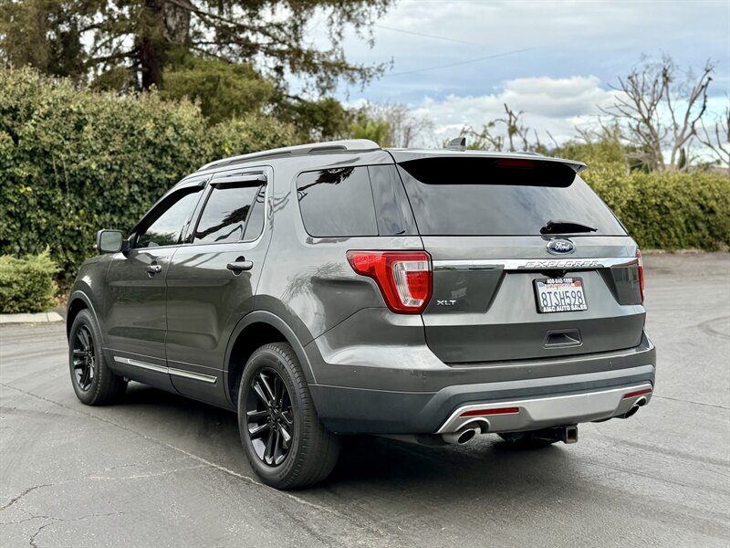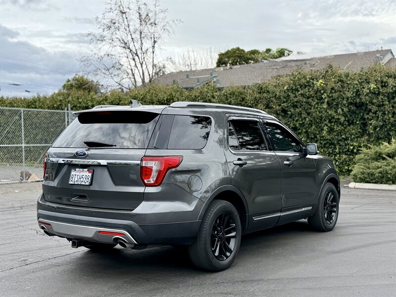 2017 Ford Explorer XLT — Shadow Black exterior, Ebony Black interior. Powered by a 3.5L V6 with 290 hp and 255 ft-lbs of torque paired to a smooth automatic transmission. Factory-equipped with seating for up to seven (fold-flat third row and 60/40 split second row), comfortable Ebony cloth seats, power windows/locks/mirrors, cruise control and steering-wheel audio controls, SYNC infotainment with Bluetooth, USB/AUX inputs and AM/FM/CD, rearview camera, 18" alloy wheels, automatic headlights, roof rails, ABS with traction/stability control and a full complement of airbags. Below 72,000 miles (under 8,000 miles/year on average), excellent overall condition, and fuel economy around 17 MPG city / 24 MPG highway — a great, reliable SUV!