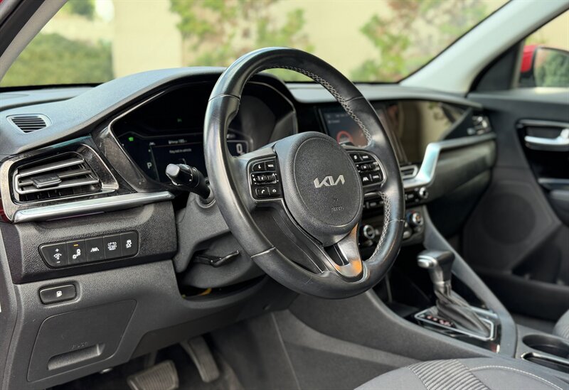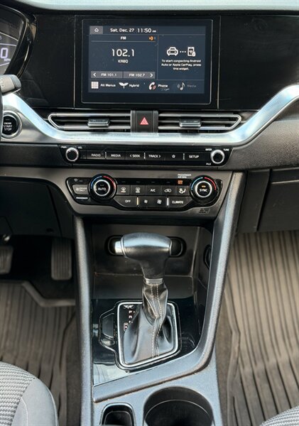 Get ready to embrace the joy of driving with the 2022 Kia Niro LXS! This hybrid crossover is powered by a peppy 1.6L Hybrid I4 engine, delivering an impressive 139 horsepower and 195 ft-lbs of torque. With its vibrant Runway Red exterior, this vehicle is sure to turn heads as you cruise through the city streets or hit the open highway. Step inside to discover a cozy Charcoal interior that balances style and comfort. The Niro LXS comes packed with impressive factory default features designed to enhance your driving experience. Enjoy the convenience of a touchscreen infotainment system with Apple CarPlay and Android Auto compatibility, allowing you to seamlessly connect your devices for hands-free calls and navigation. The rearview camera and parking sensors ensure you can maneuver with confidence, while the spacious cargo area offers plenty of room for all your adventures. Fuel efficiency is one of the Niro's standout features, boasting an incredible 51 MPG in the city and 46 MPG on the highway! This means more time on the road and less time at the pump. With excellent overall condition, this 2022 Kia Niro LXS is ready to take you on countless journeys, all while keeping you eco-friendly and stylish.